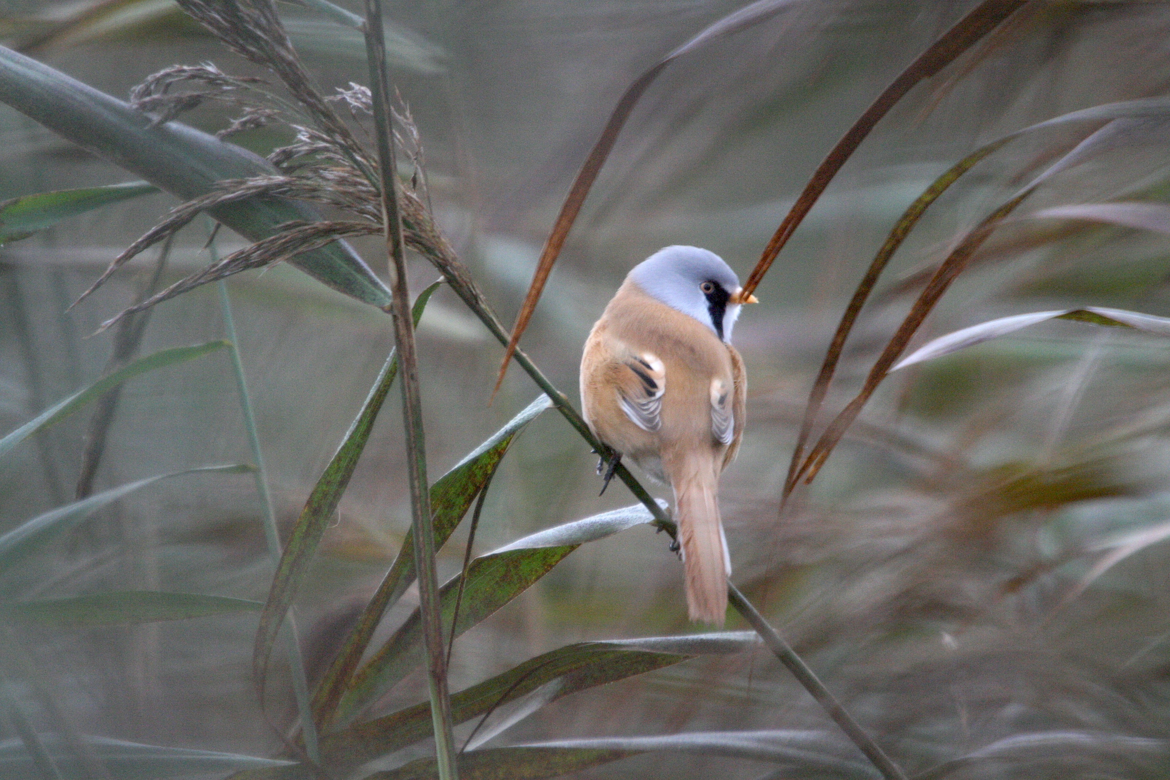 Bearded Tit eventually showed this morning either side of 9 a.m. Quite vocal but very flighty. Looked as tho’ it was leaving at one point but wheeled round and came back. Last seen flying over to an inaccessible part of the reeds backing on to the dog field. Crap light but got a couple of record shots.