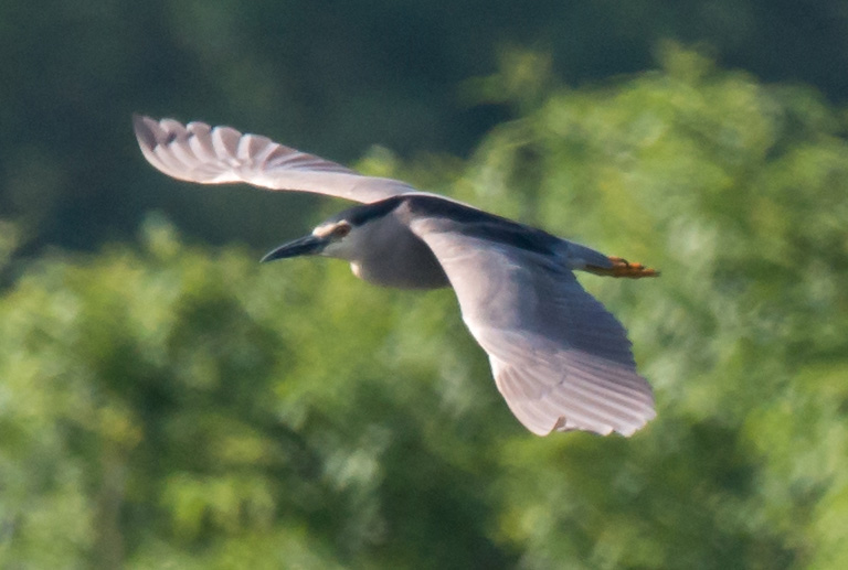 Adult Night Heron roosting in trees near reed bed in west lake. Seen in flight a couple  of times earlier and has just disappeared from view in trees at 9.25 photo to follow when I get back home