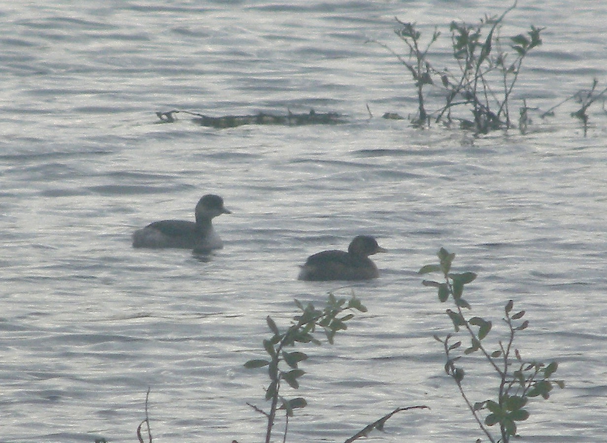 Llanishen, am: A black-necked grebe was on the main lagoon, associating with some of the many little grebes currently present. Views were a bit distant (see dodgy record shot) but it looked similar to the juv bird that was on Lisvane Res yesterday. Also, plenty of movement going on with 1 wigeon, 8 teal, 2 mallards, 6 meadow pipits, 2 reed buntings, 8 chiffchaffs, 2 blackcaps, 31 Canadas, 2 mute swans, 3 moorhans, 10 tufties and 10 coots.