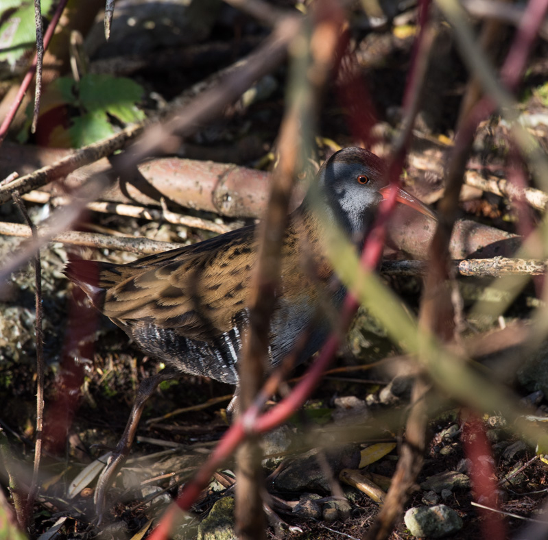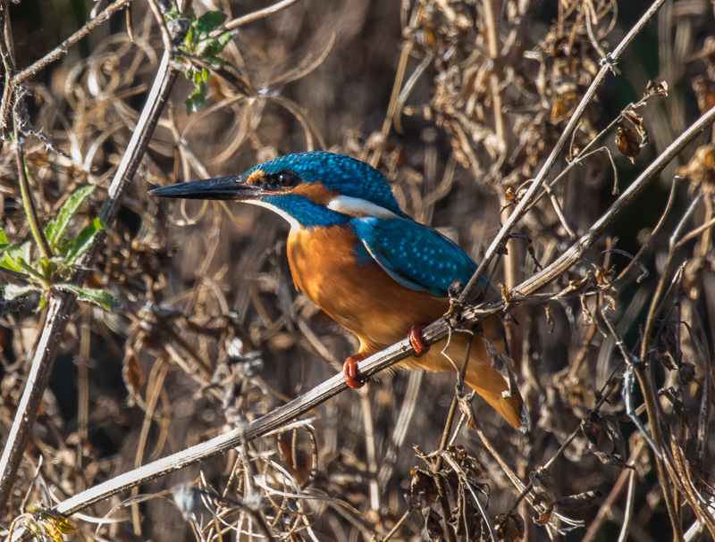 Kingfishers showing very well around the boardwalk in the wetland reserve this morning, at least 3 birds – and a Water Rail creeping around right next to the boardwalk but just in the bushes.