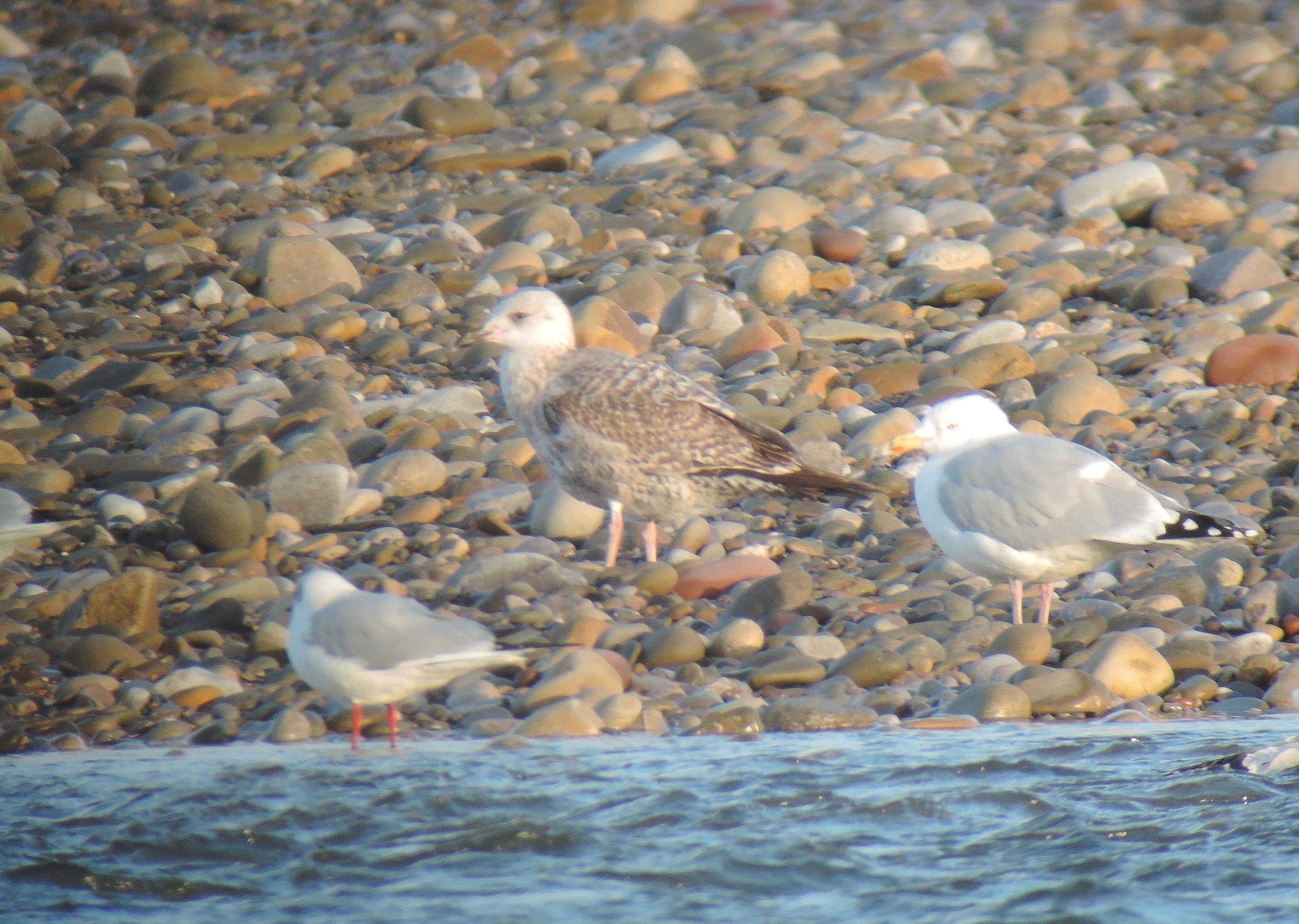A 1st-winter Yellow-legged Gull was at the rivermouth briefly this morning. I grabbed a quick record shot before it flew off up the river.