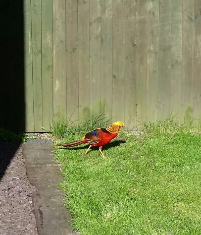 This Golden Pheasant was seen in a private garden in Abercynon this morning. This is a crop from the original I was sent. Thanks to Club member Ceri Binding for forwarding the photo, and to his colleague Keith Norris for sending it. Must be an escape – the Norfolk ‘Wolferton Triangle’ birds aren’t that mobile!!