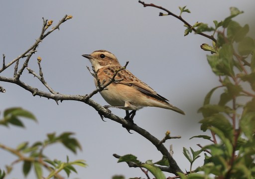 One of the two Whinchats at Cosmeston, first reported by Annie Irving this morning. This was taken at about 3:45 this afternoon after some very careful stalking. They were very active along the W paddock hedgerow, sometimes dropping into the tall ground vegetation and never spending very long on the hedge tops. I used the cover of a bend in the hedge and managed to get 4 pix of which this is the best – even then it’s a crop. Also a present a v active Chiffchaff. Couldn’t find the Wheatear reported this morning.