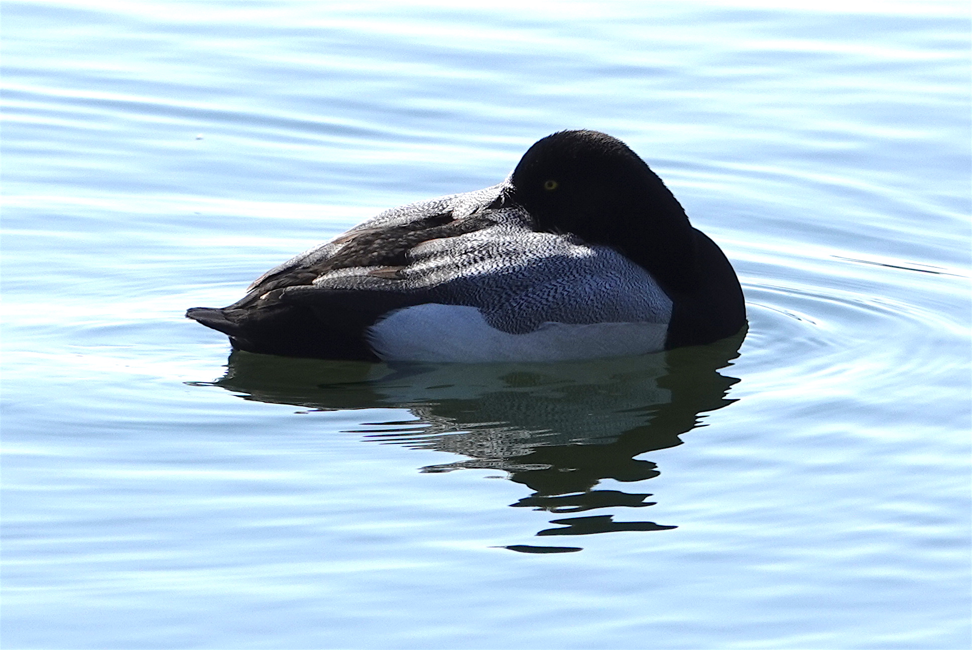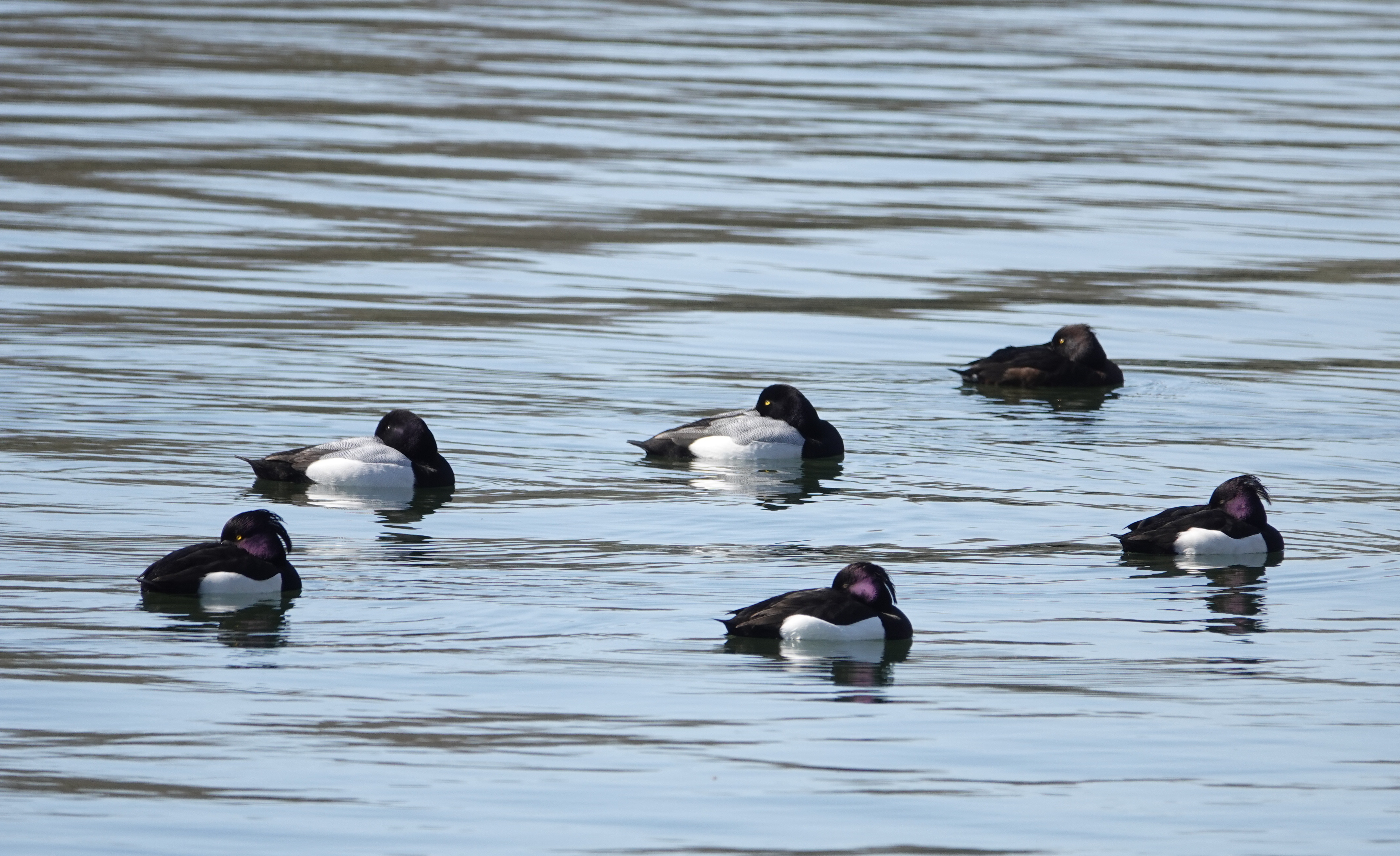 Highlight early afternoon was 2 adult drake Scaup with Tufties on east lake. Chiffchaff singing and 2 Blackcap heard in song, 2 Buzzards thermalling. Nice show of Primroses in E paddock.