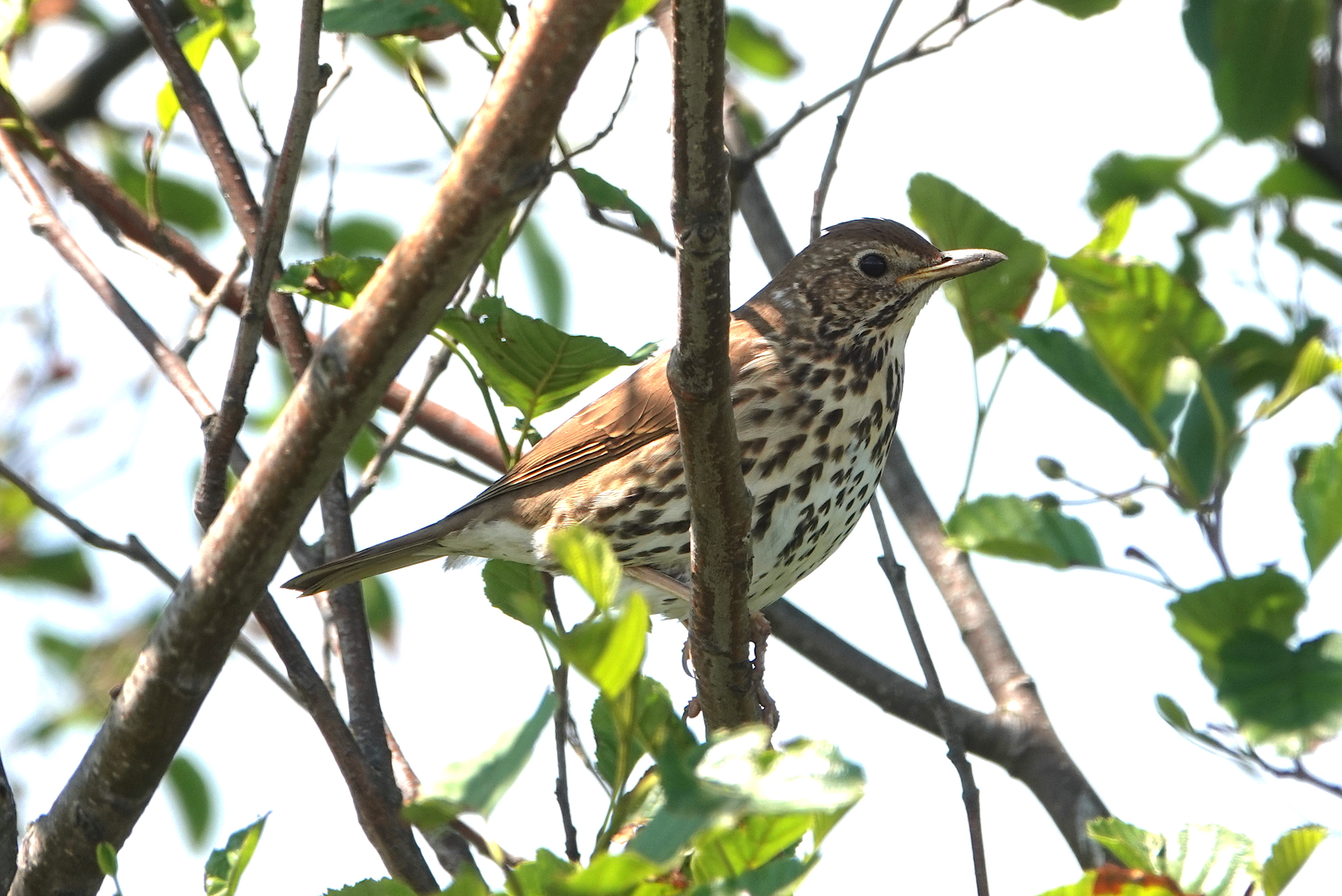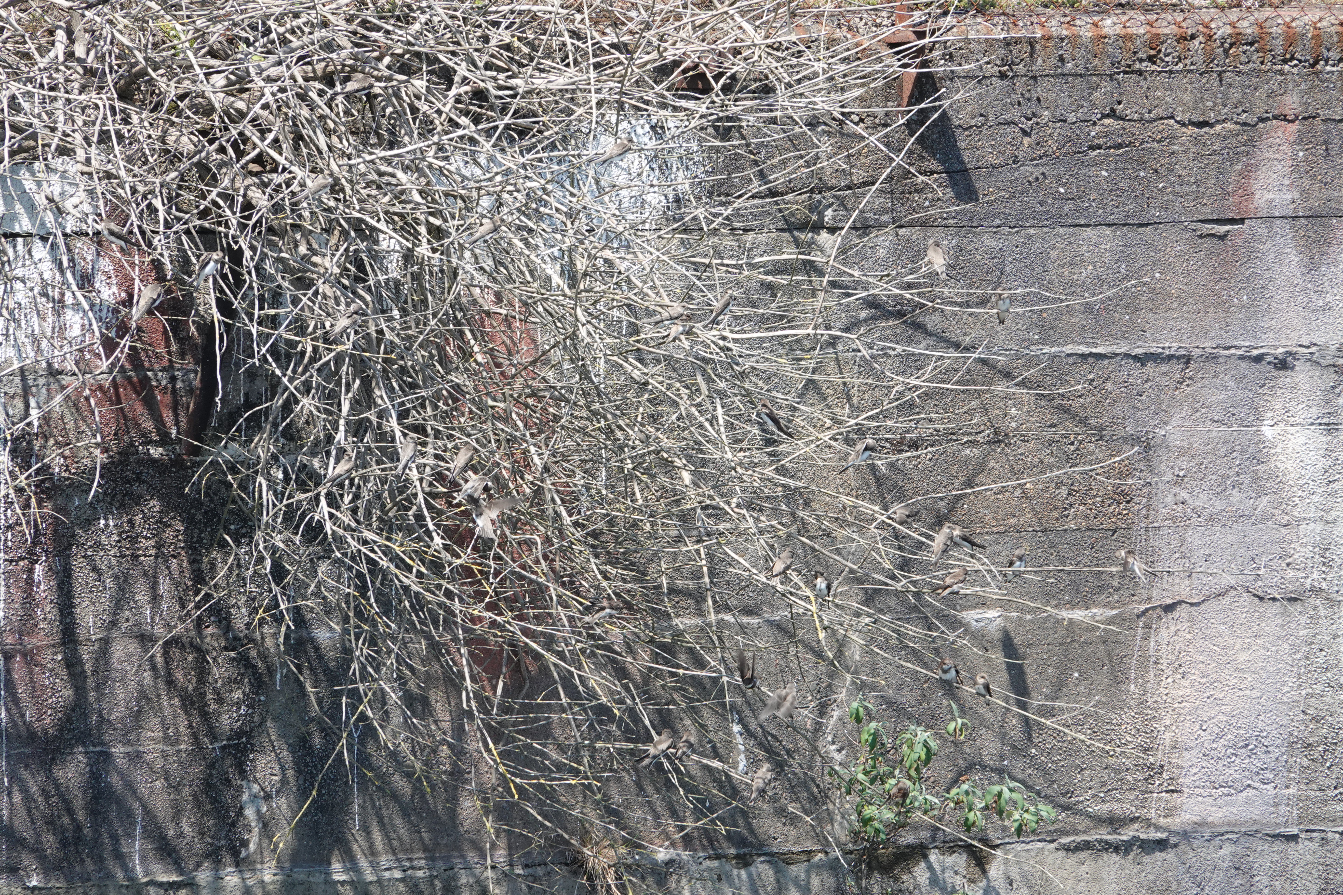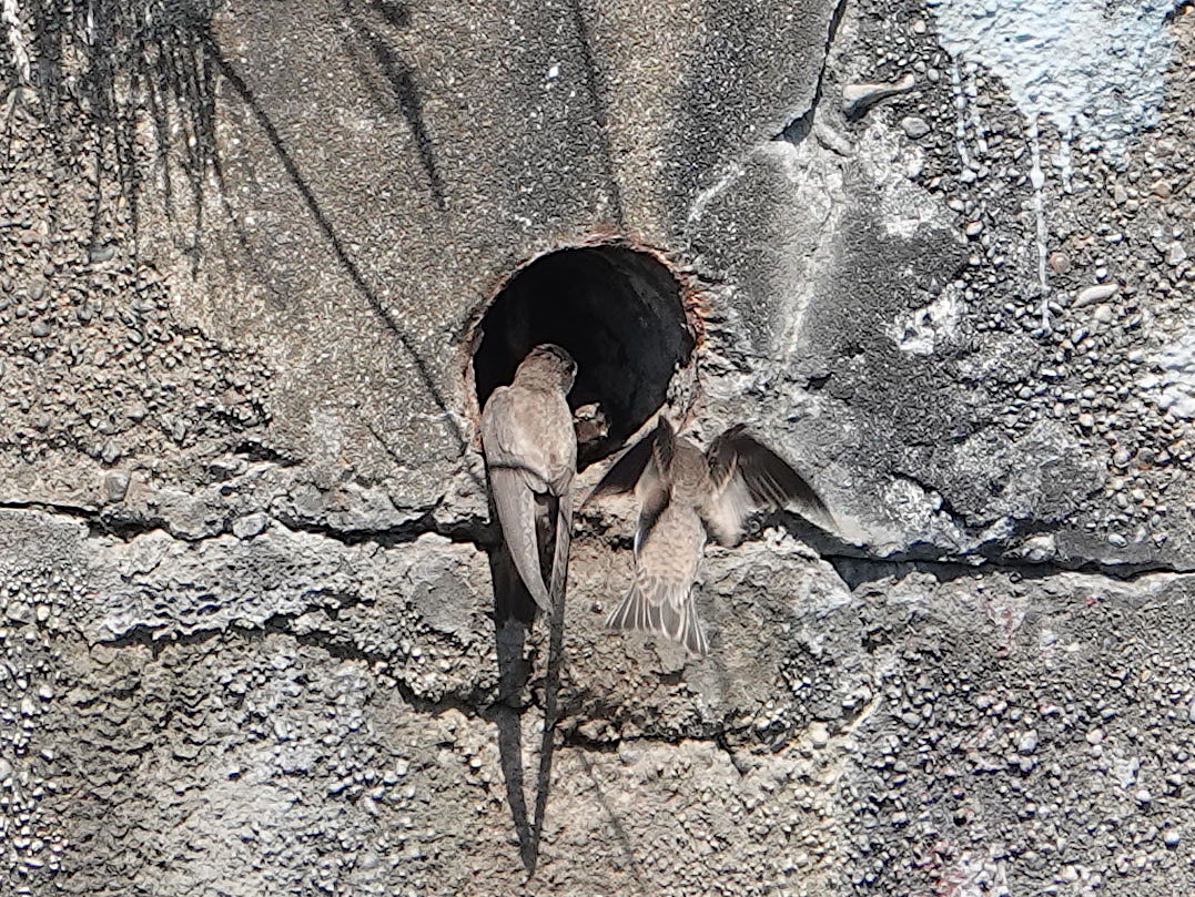 At the Cardiff end towards Roath Dock, Song Thrush, 1 Oystercatcher on the environment building docking ramp, 1 Common Sandpiper across flew from the direction of the Norwegian Church onto the shore somewhere by the new path, juv GC Grebe playing hide & seek, quite a few Greenfinch which seem to like that end of the barrage. No Swift, and the Swift tower call system making a weird croaking noise so the repair not successful. Lots of Sand Martins at the Roath Dock nest holes. Count the resting Sand Martins in the twiggy bush – they like perching up there. I reckon there’s 18 or 19.