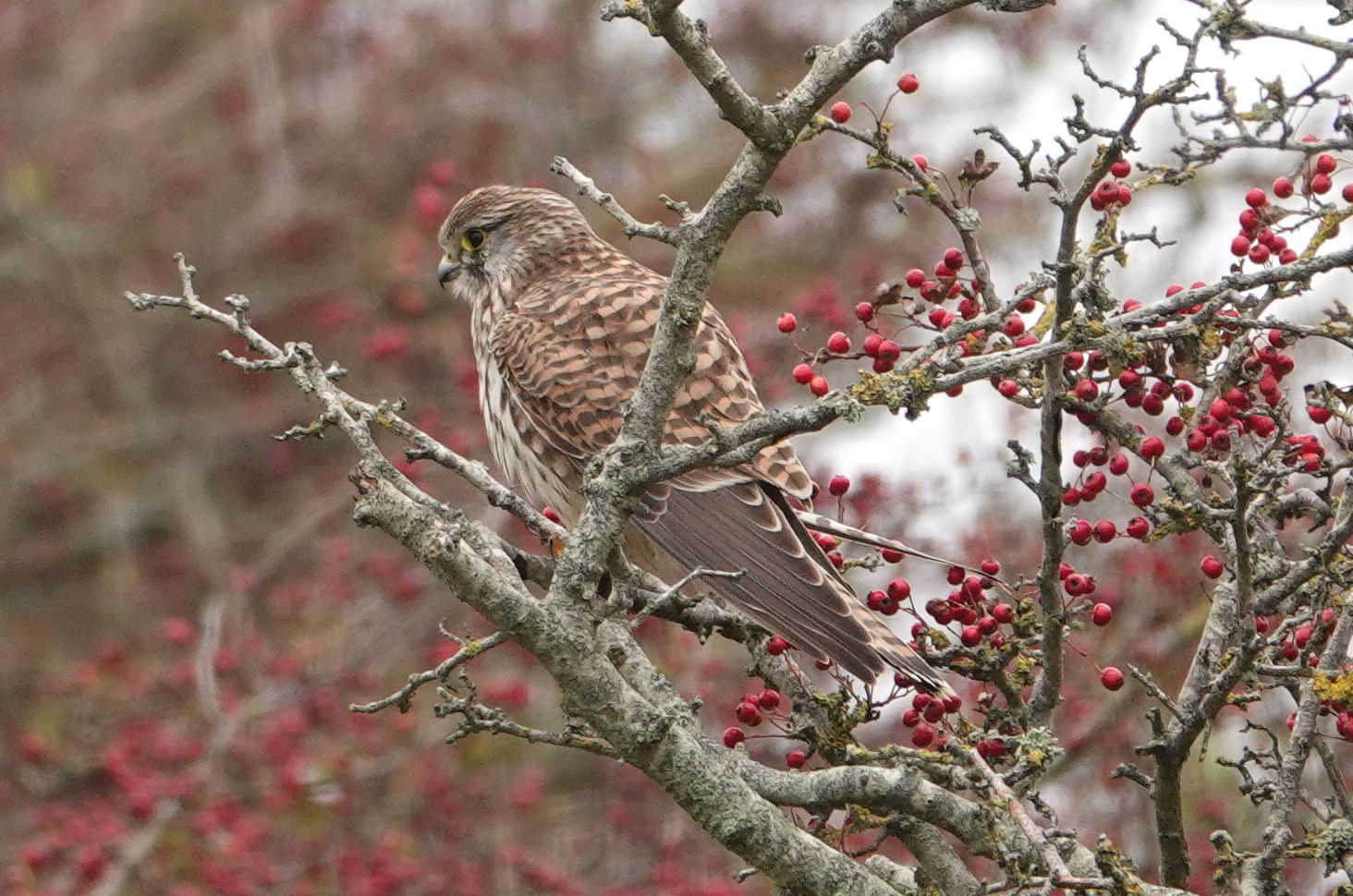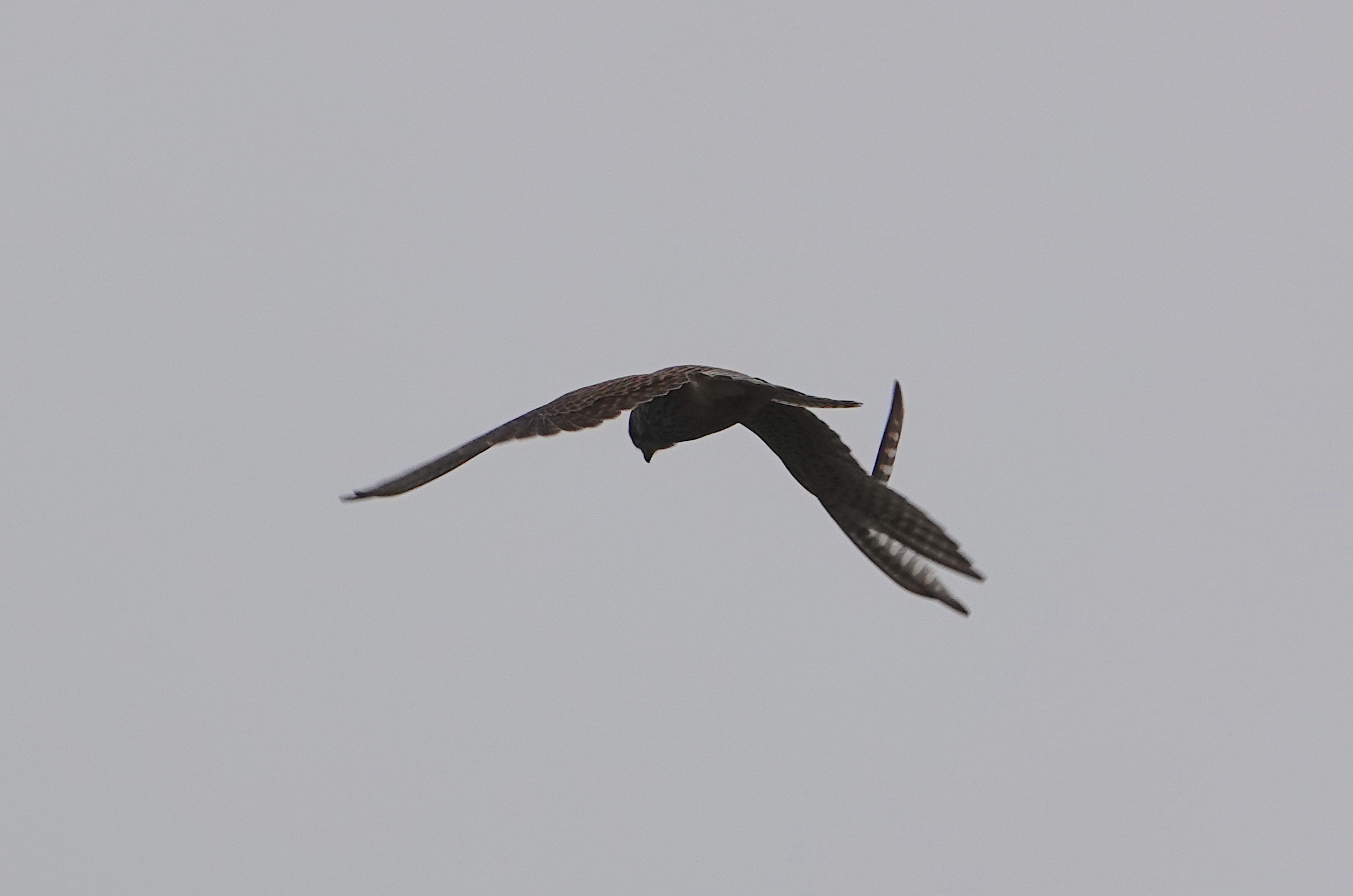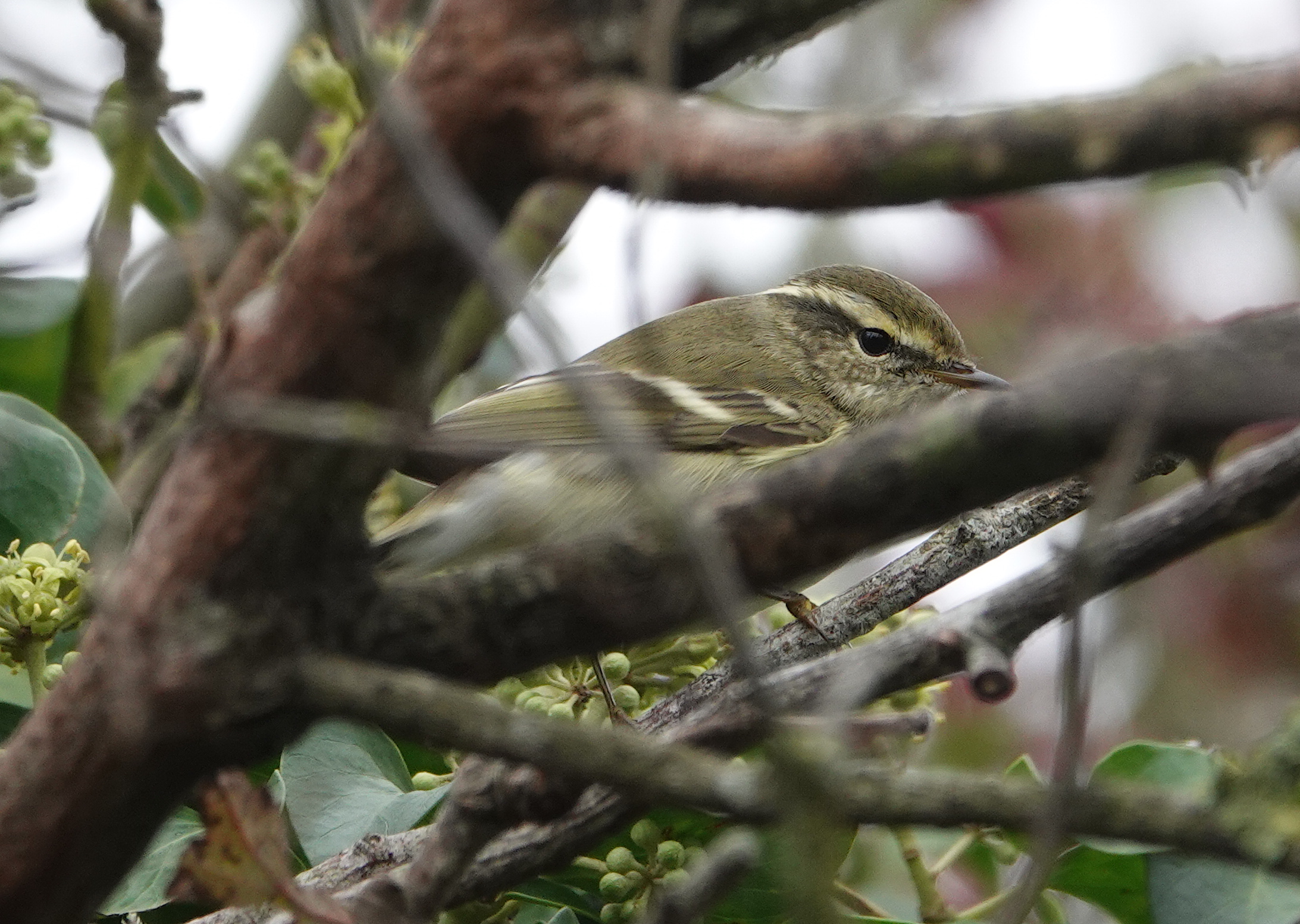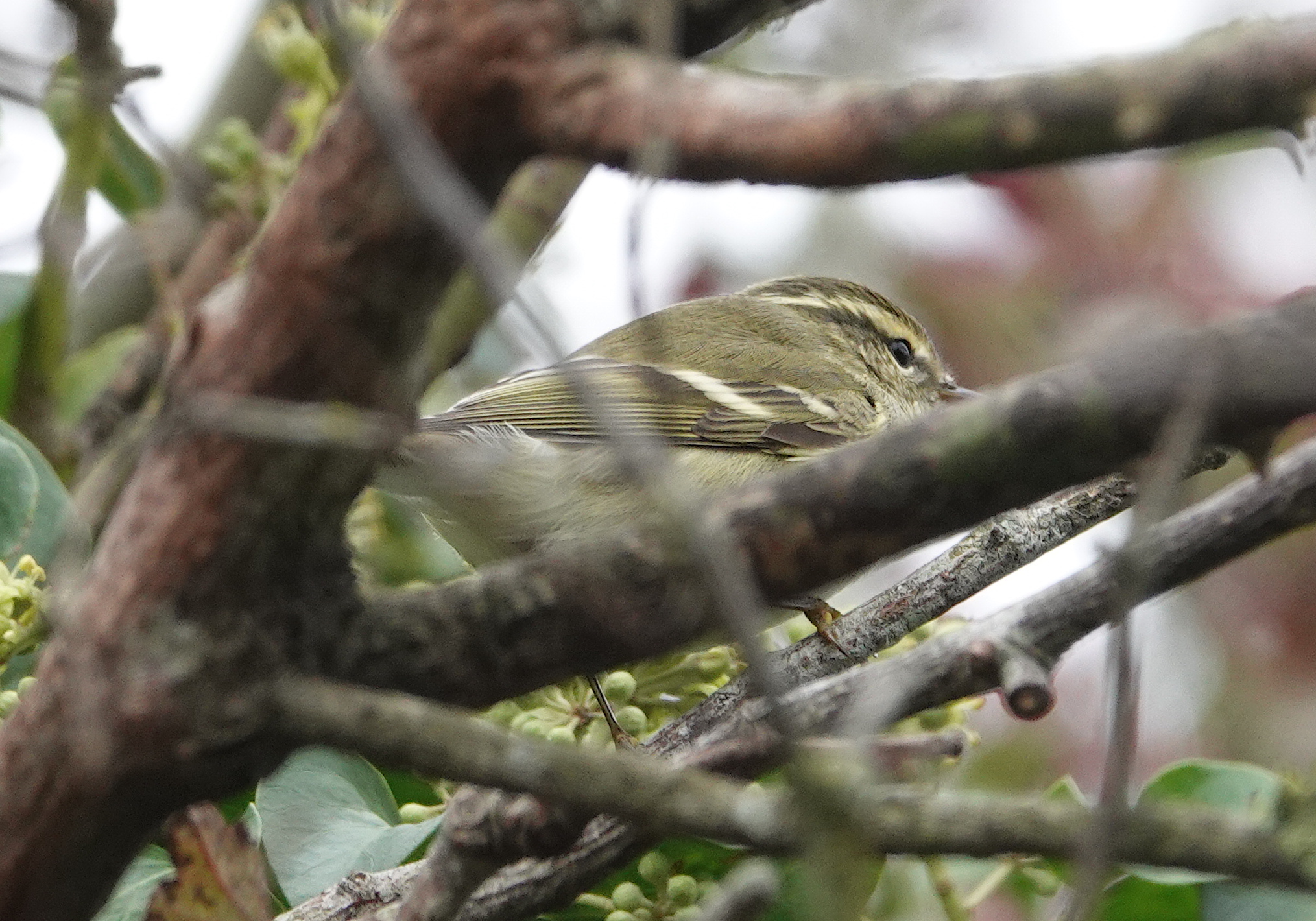 Paid my first visit here for quite a while having seen a Tweet that Graham Smith had found a Yellow-browed Warbler. Got on to it eventually as it was calling a lot. Very difficult to get a clear view of such an active bird in fairly dense canopy cover. Eventually showed pretty well, even allowing me to get a couple of shots off. There were several Chiffchaffs present too, allowing for comparison of the differing calls. YBW much higher pitched and ‘cleaner’ than Chiffie. Similar in some ways to Coal Tit, a fair flock of which moved through. A Kestrel with a damaged, loose primary was hovering over the coastal field, and eventually perched, and a Sparrowhawk had an aerial set-to with a Magpie. Big flock of Linnet present also. Location of the YBW was at ST 186689 where the farm track from opposite Cosmeston meets the coastal path.