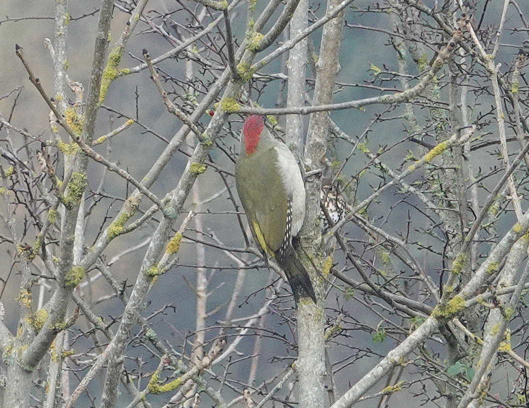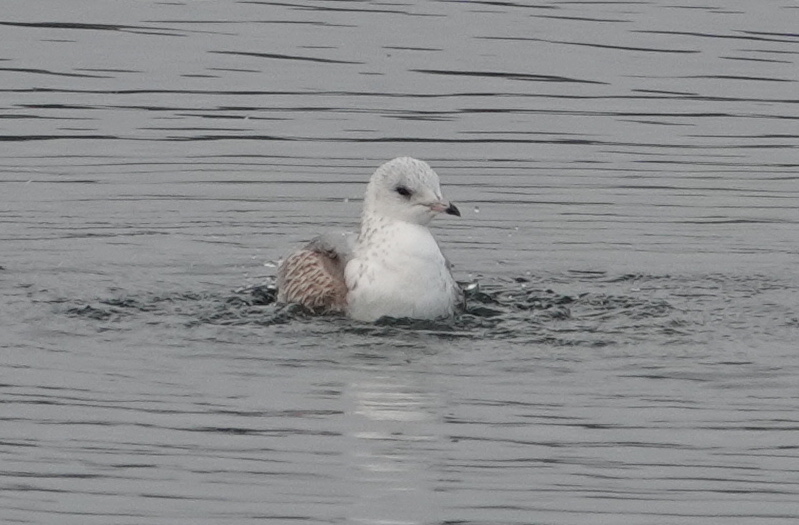 Misty and murky this morning. A lot of thrushes in the snipe paddock, Blackbirds, several Song Thrush and Redwing. Also this Green ‘Pecker reluctant to show its face [also pretty distant]. In amongst about 100 Black-headed Gulls on W lake, this 1st cal yr Common Gull [massive crop as it was in the middle of W lake]. Cogan Wood has some nice colours.