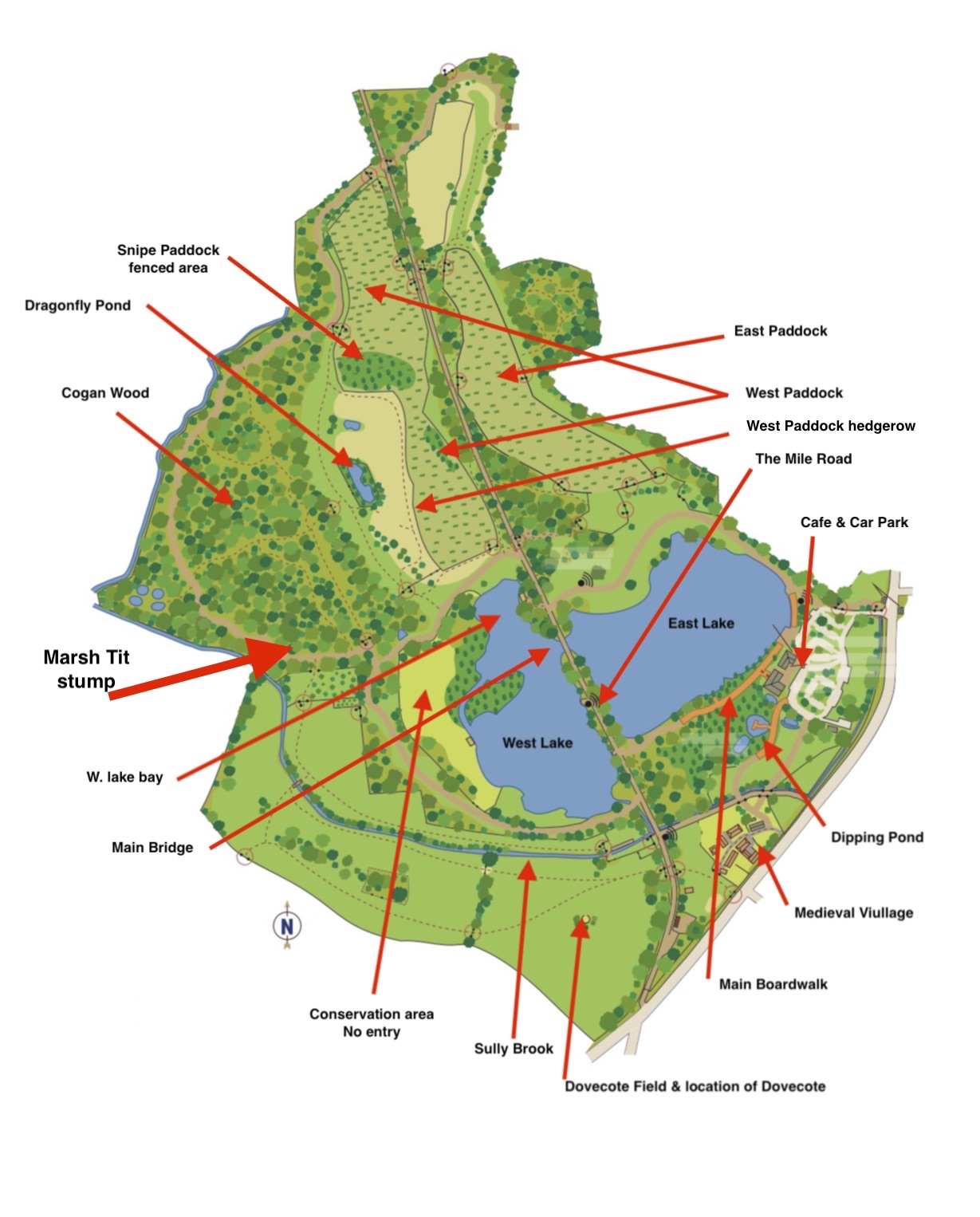 For the third visit in a few days, the male Sparrowhawk was again in a tree in the snipe paddock. It seems to have taken up residence there and I’m guessing it’s using the ‘rides’ that have been cut through the vegetation there, as hunting alleys. A Green Woodpecker was also in that vicinity, but otherwise it was pretty quiet. A few pix of the Sparrowhawk below, plus one of the ‘rides’ as an example. In case folk are not familiar I’ve incuded an image of an annotated map which I produced and a larger version of which can be found on the ‘Cosmeston’ page of my blog https://greybirder.wordpress.com/.