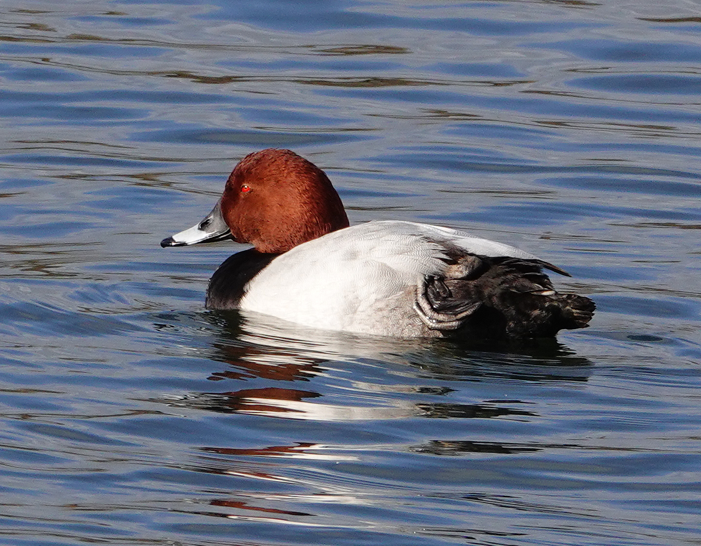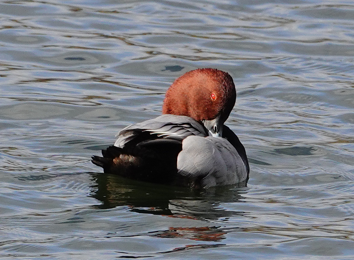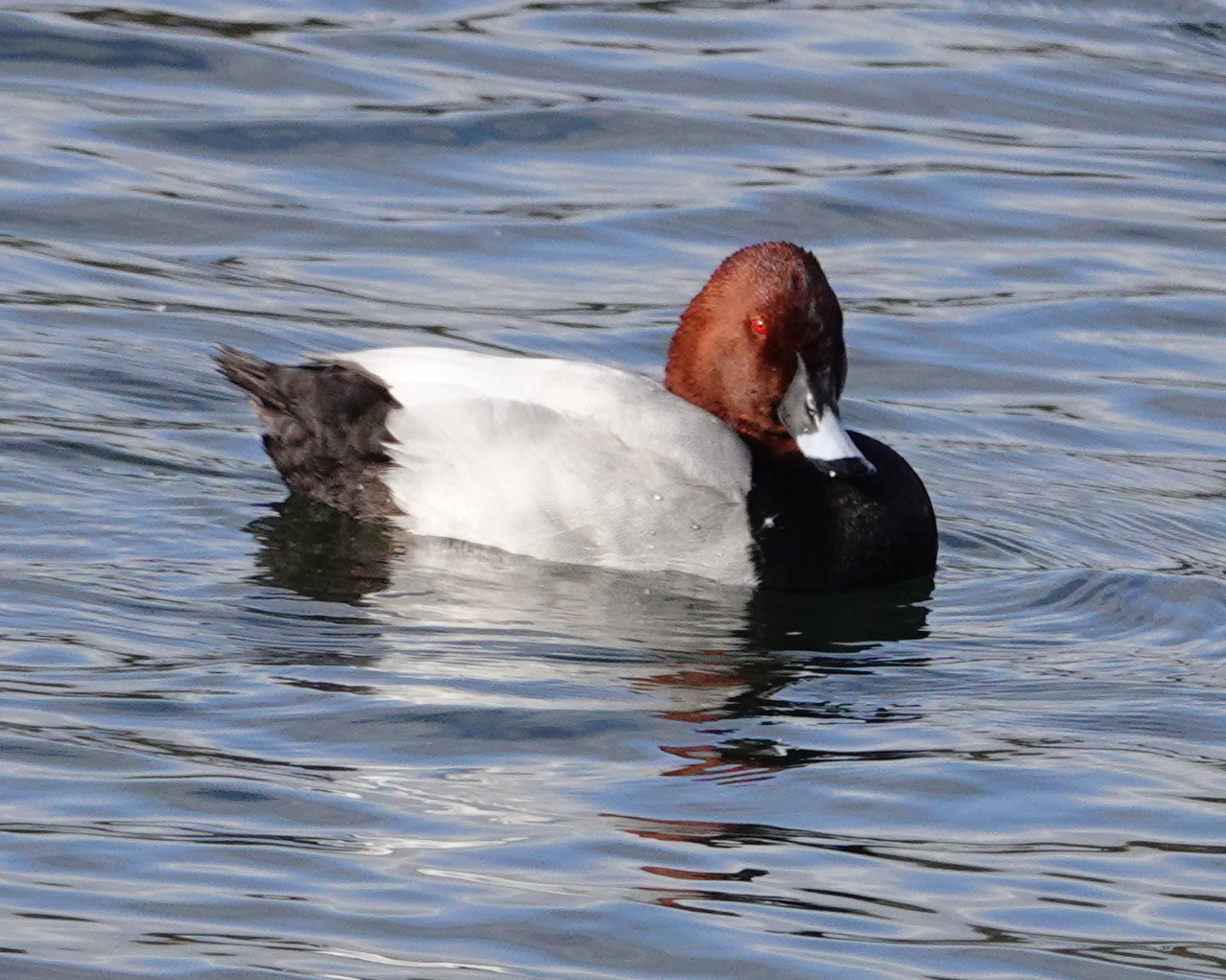 On 2nd I watched a female Great Spotted Woodpecker chipping away at a tree in the wooded area behind the bird table. Today, 7th Feb, in a very cold easterly wind a quickish circuit round both lakes. There were 22 Pochard on W lake in nice light so managed some nice shots of a couple of drakes. They were closer than usual but still needed a biggish crop. Two Little Grebes were in the bay and there were 3 Gadwall. A lone Redwing was in leaf litter by the high path at the back of W lake.