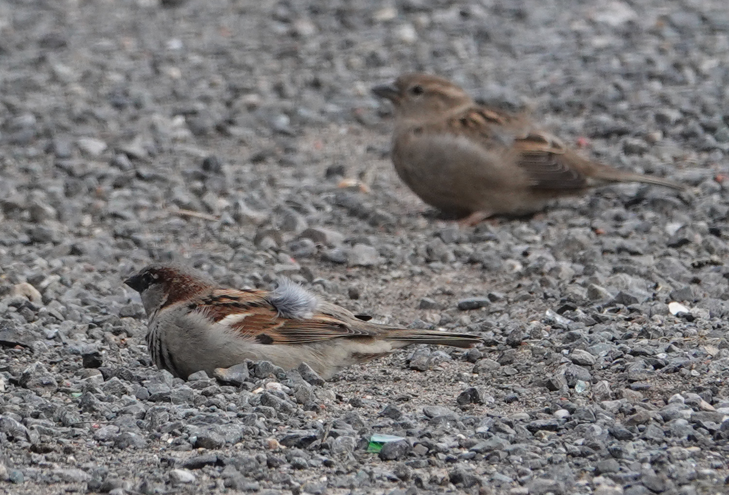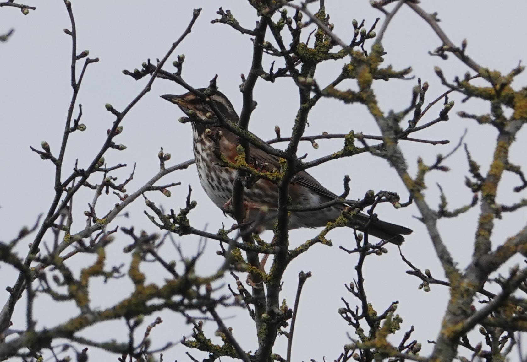 Cosmeston a.m. 6+ Chiffchaffs were singing – managed to grab a shot of one by W lake. A Skylark was singing over the upper dovecote field which was nice to hear. As it parachuted back down it was joined by another just before landing – promising? Fem Stonechat was in the plantation of saplings further along above Sully Brook and a lone Redwing was in trees there. W lake has an active Mute Swan nest and Coot. 2 prs of GC Grebes present. Pochard now seem to have departed. but there aere a few Tufties left. 2 Fieldfare flew out of the conservation area. House Sparrows were dust bathing near the Medieval Village.