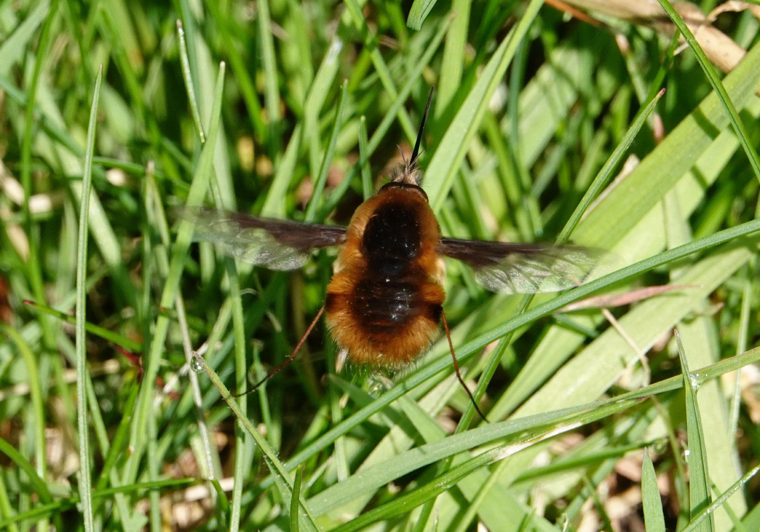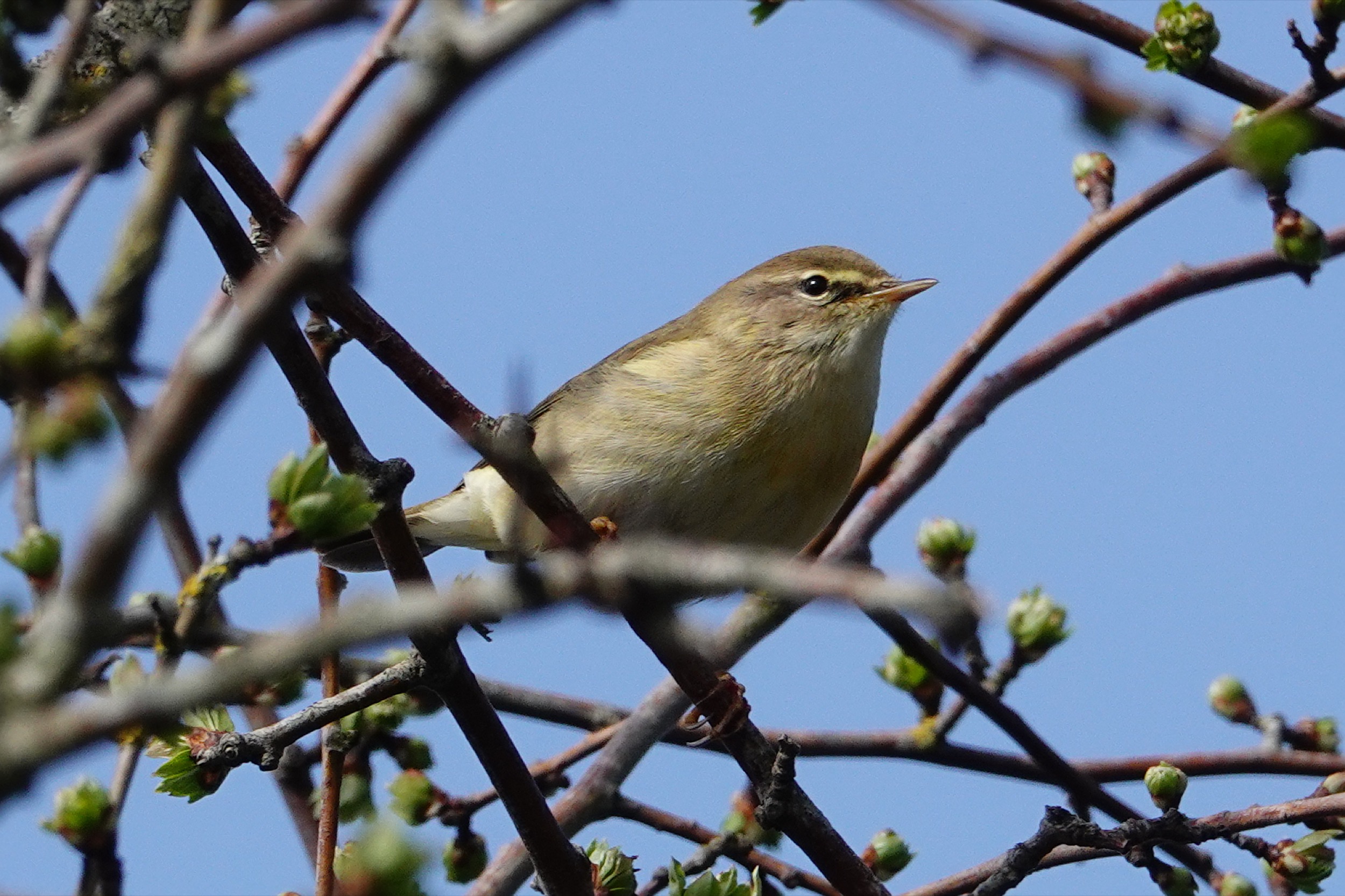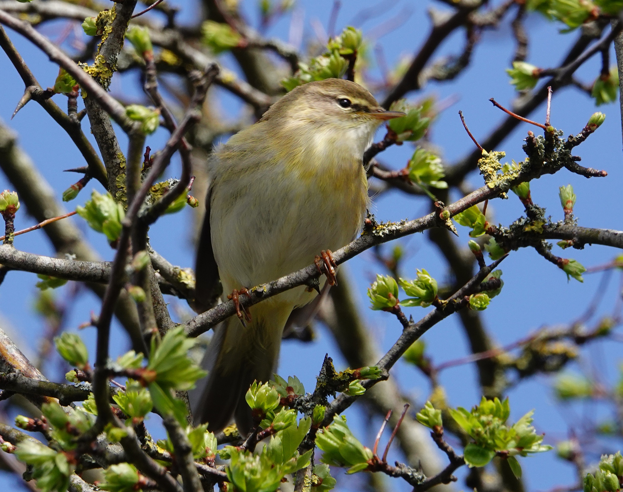 From a visit on 3rd April – a posing Willow Warbler near the central viewpoint, a Dark-edged Bee-fly feeding on Ground Ivy and some Cowslips coming in to flower.