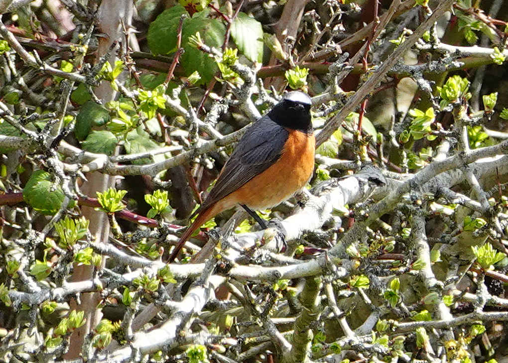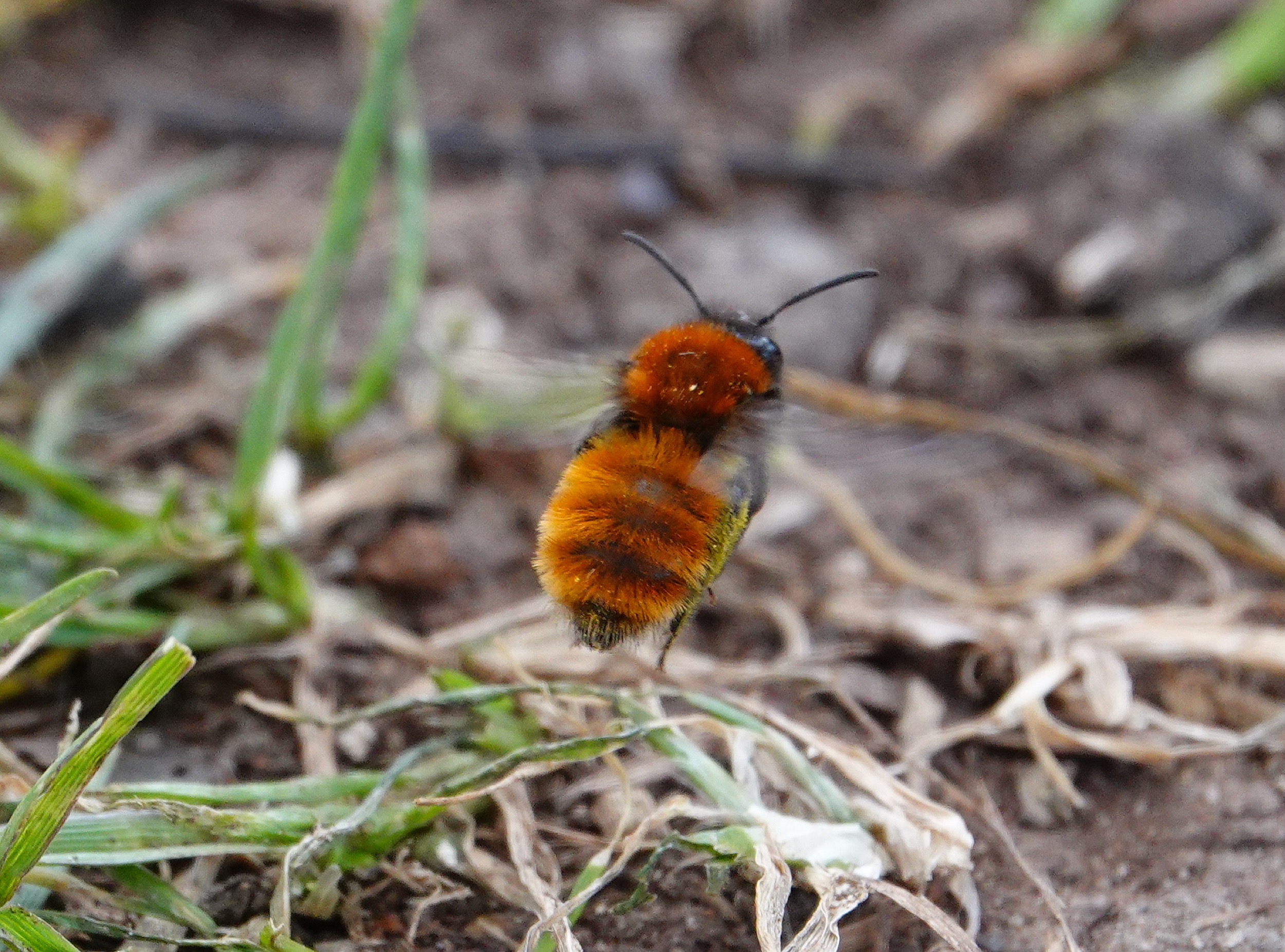 Cosmeston a.m. produced a v smart male Common Redstart in E paddock, 2 singing Willow Warblers by the Mile Road, and an obliging male Pied Wag by the car park picnic tables. Also there of interest, a Tawny Mining Bee and a Buff-tailed Bumble Bee which was carrying a load of mites [these re apparently harmless to the bee but take a ride too the nest where they clean up detritis and other unwelcome guests]. If you’re on Facebook there’s an interesting post here: https://www.facebook.com/monktonreserve/posts/1555662794623353