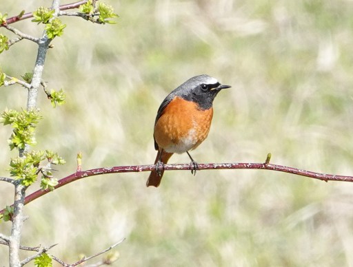 The Common Redstart was in E paddock again this morning, in the same area. Got a couple of nice shots against a better background, but still from quite a distance. One below as taken and the other cropped with the bird in a better pose. Nothing else particularly special although a Buzzard dropped into trees behind the dragonfly pond.