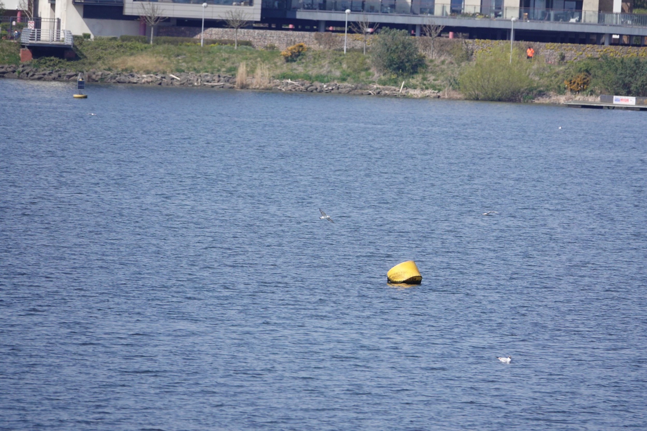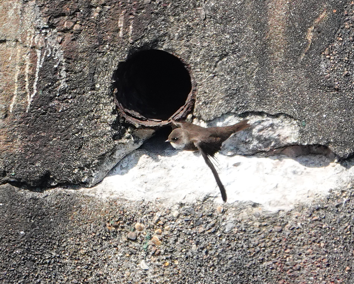 A bit late posting this, but I nipped down to Cardiff Bay on 19th Apr to see the immature Boonaparte’s Gull that had been found the day before. It was out with the Black-headed Gulls, viewed from Plas Taliesin – Penarth Marina., too far out for decent shots. At the Cardiff end of the barrage there were 2 Rock Pipits on the outer rocks, one of which was singing [never heard that before]. A few showy Greenfinch were near the old dock, where 50+ Sand Martins were busy choosing holes in the walls for nest sites. One obligingly perched on a jutting out twig on my side of the dock, to give a good photo opportunity. One image shows how far away the Bonaparte’s was! – spot the gull!