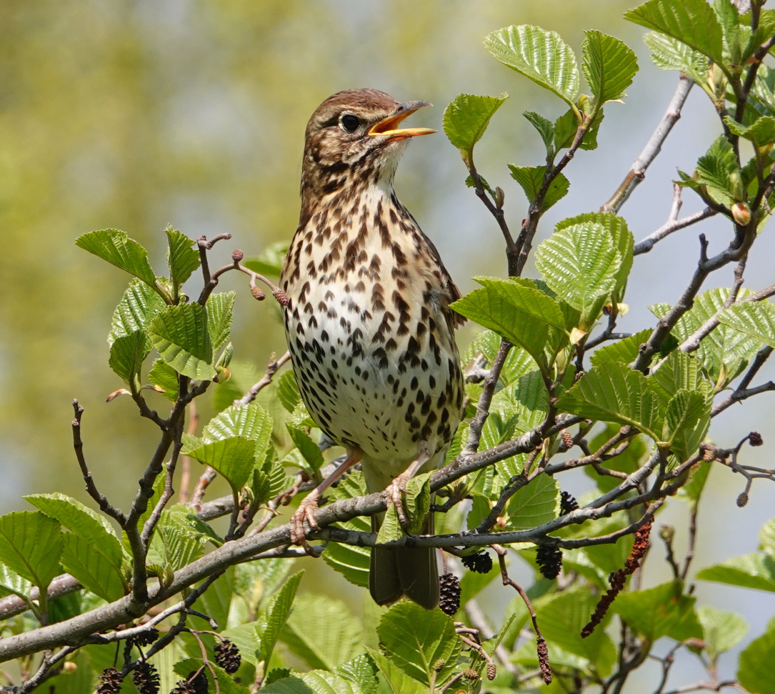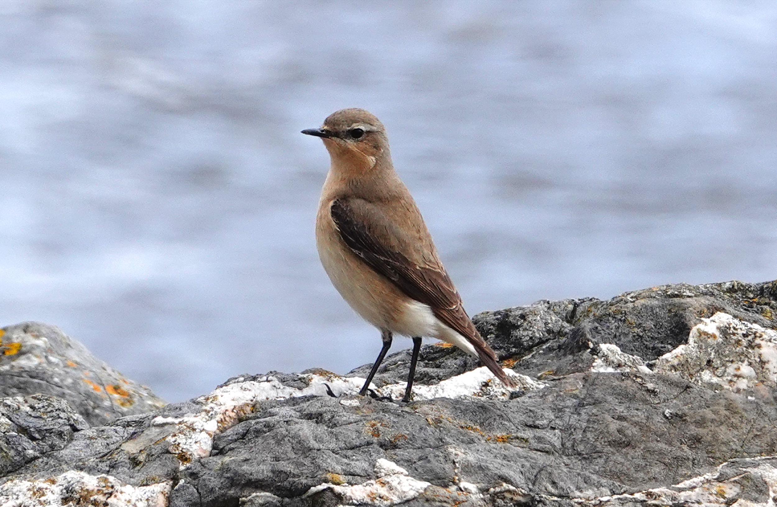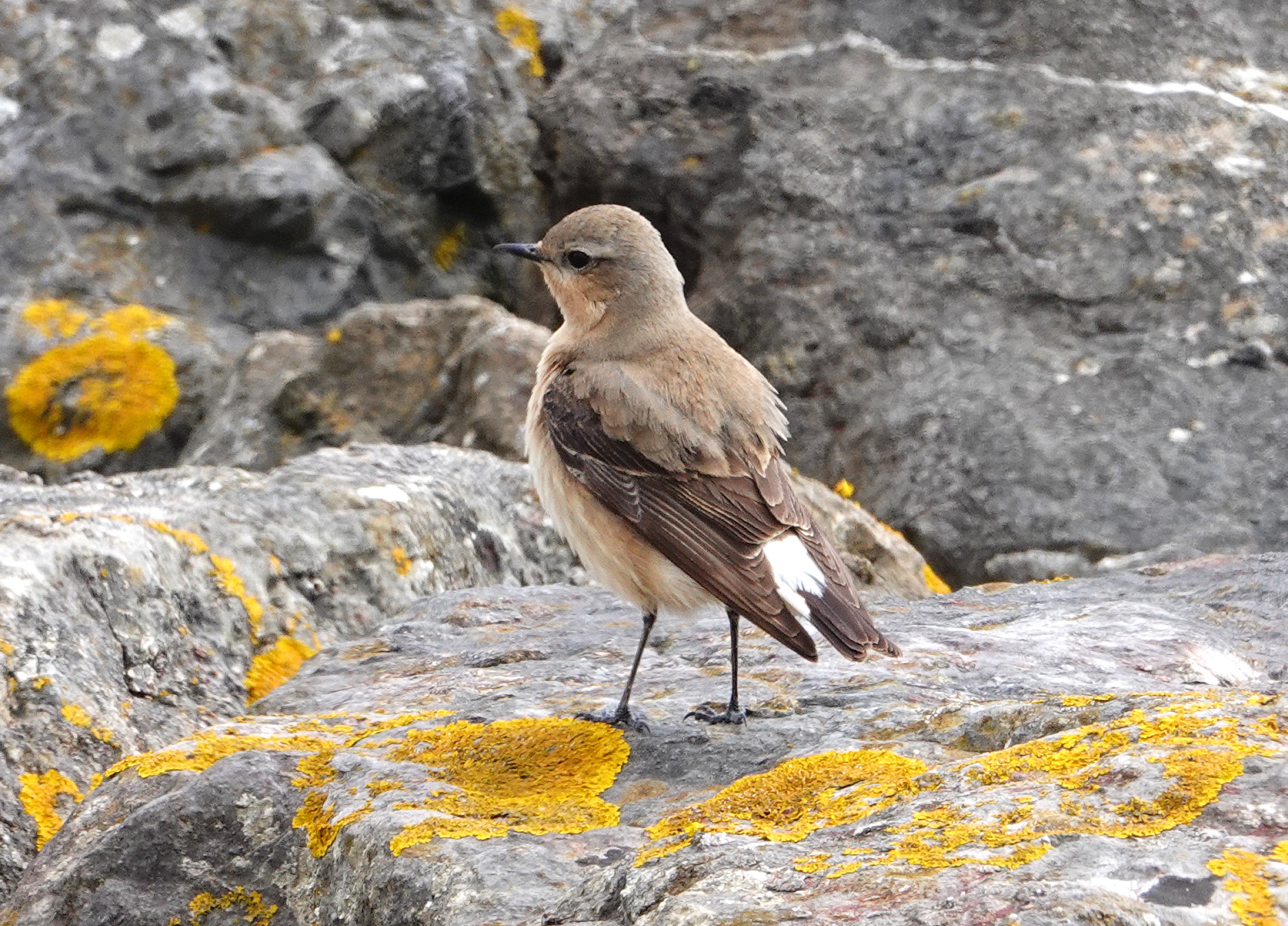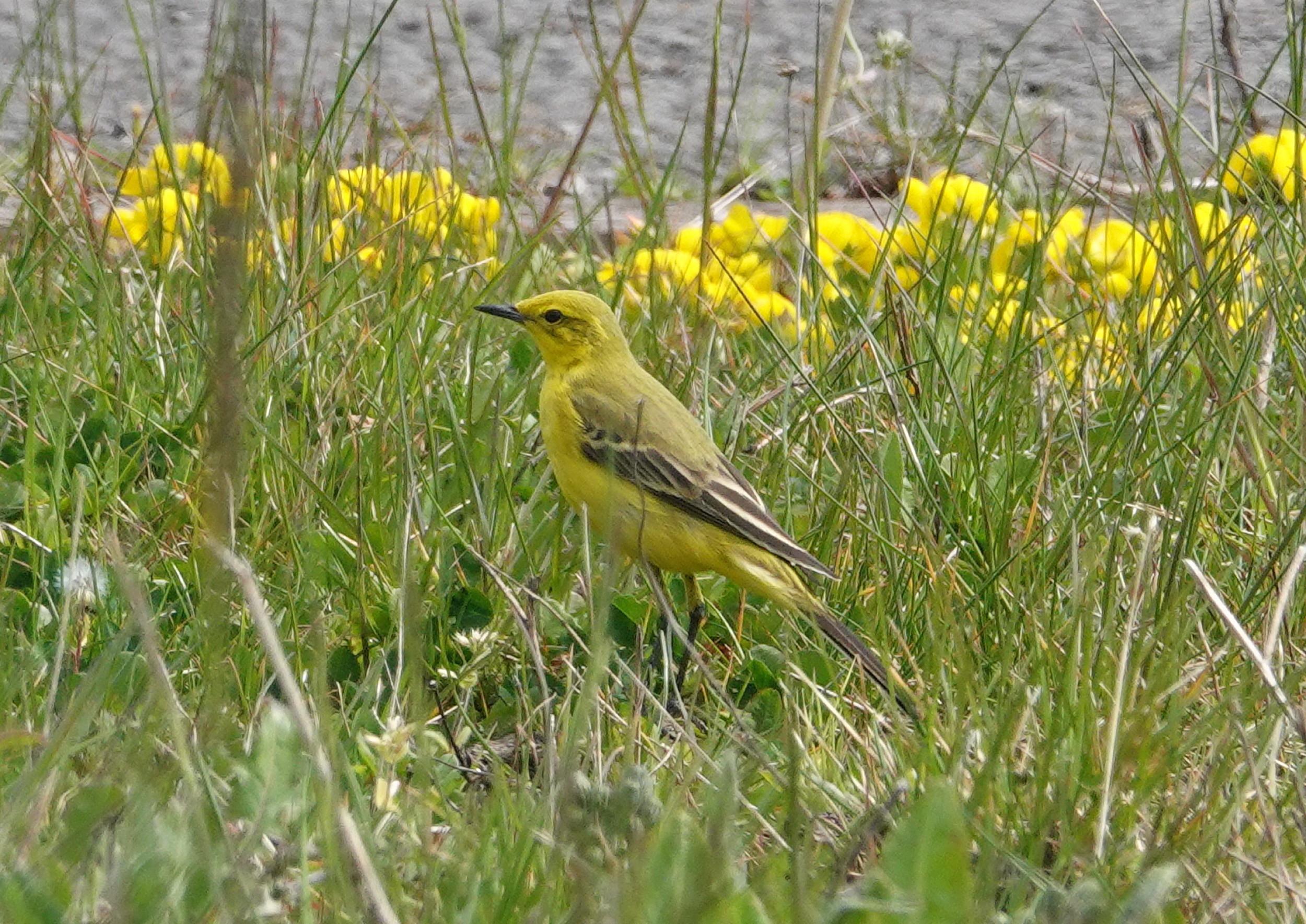 Pretty busy by the time we walked across, but not too bad. No sign of the 6 Yellow Wagtails that Peter Howlett had seen on the barrage earlier, but I soon relocated them in the grassy area behind the green chainlink fence opposite the swift tower. Never very close but I managed a few record shots through the fence. At least three Whitethroat were singing a bit further along and an obliging Song Thrush was singing by the swift tower. The Sand Martins are now visiting holes in the old feeder dock. On the way back a female Wheatear was on the outer barrage rocks.