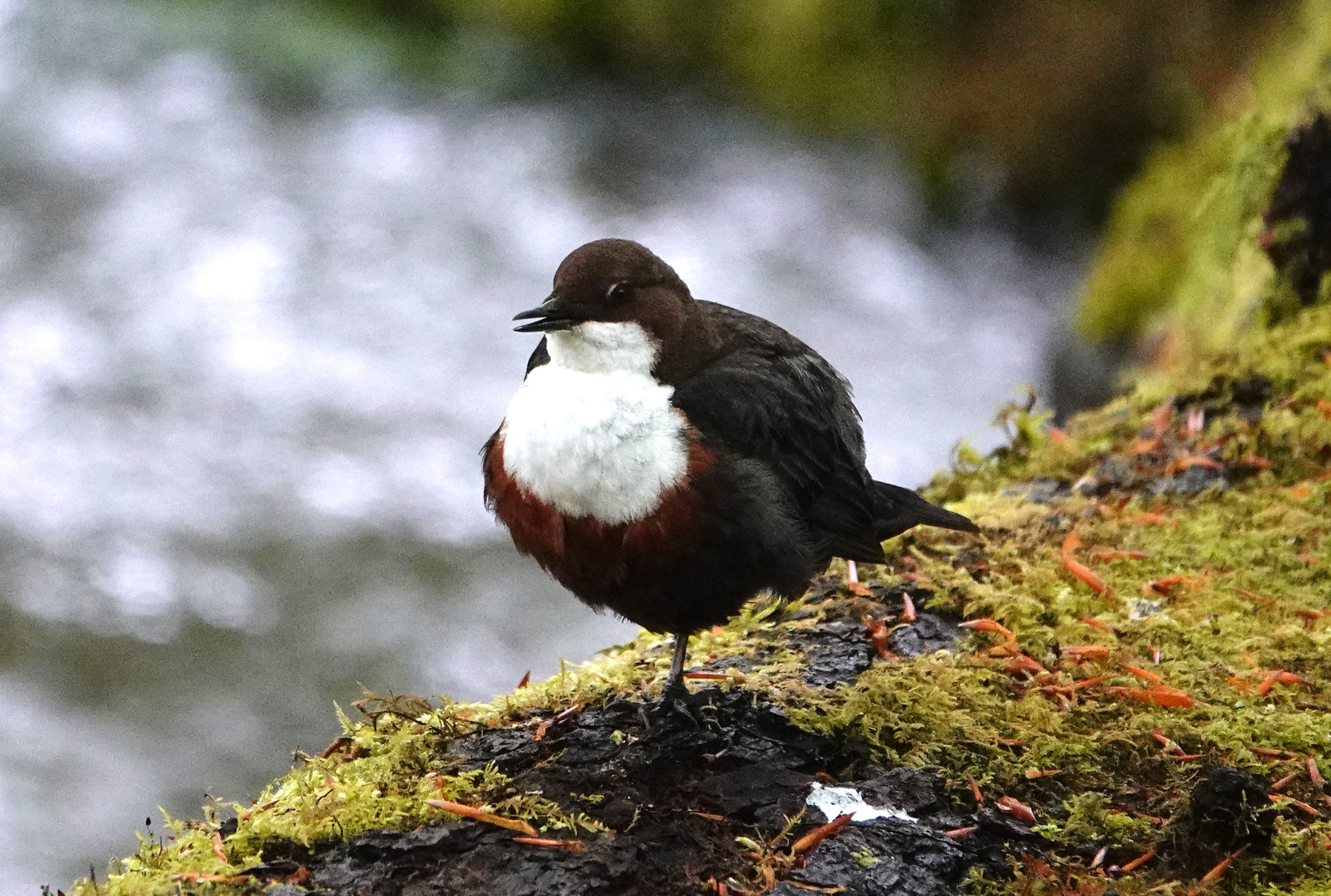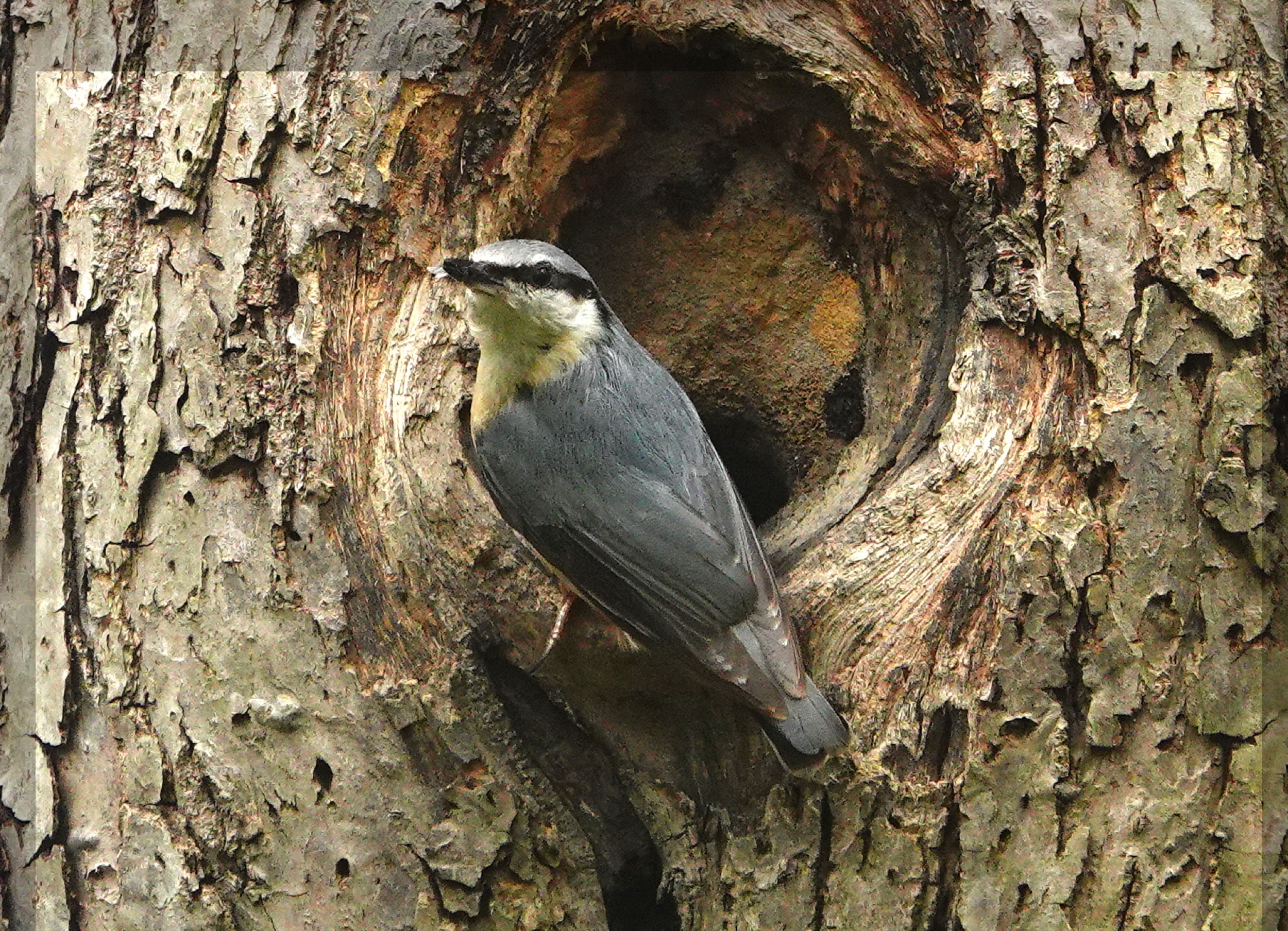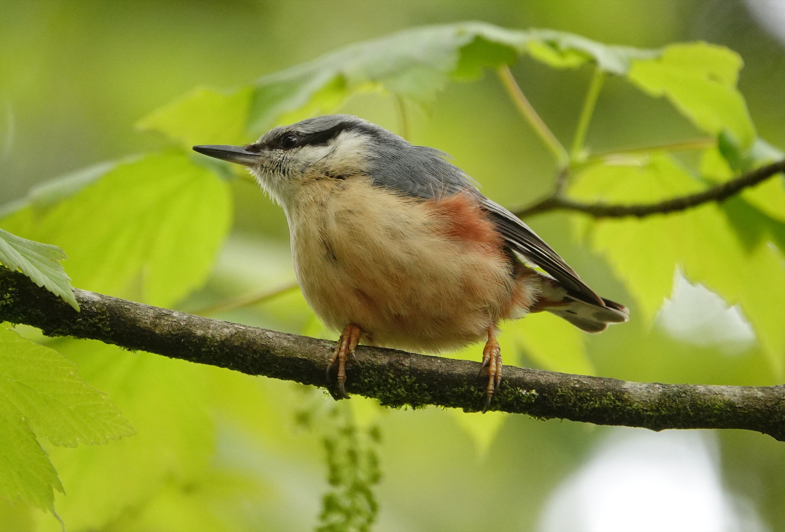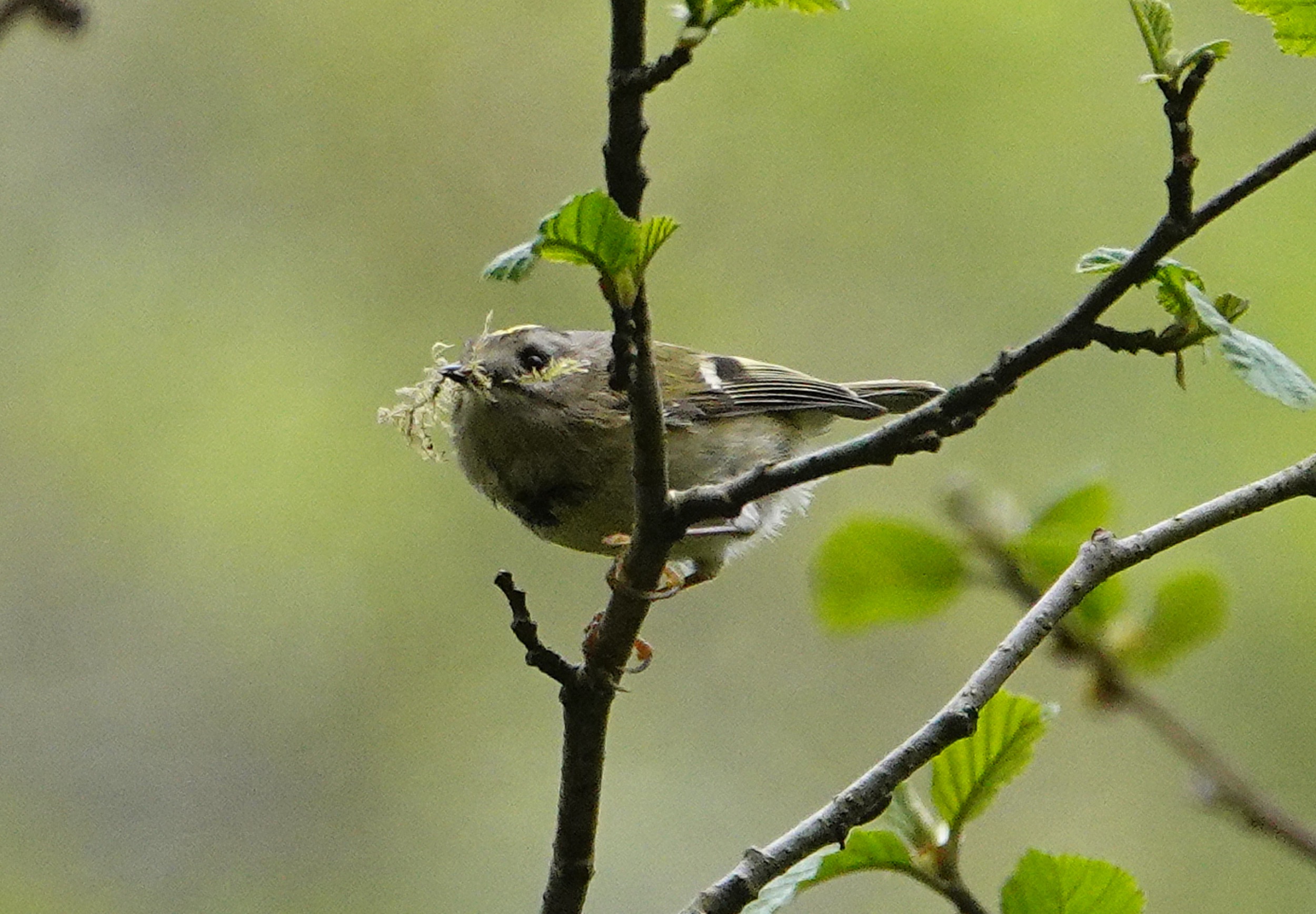 Decided on a change of scenery and drove to Bryngarw Country Park on a very dull day. It was a very pleasant circular walk, initially alongside the R. Garw, which was a raging torrent. A Dipper was resting obligingly close on a mossy tree that had fallen across the river and a Grey Wagtail showed briefly in the same area. An active Goldcrest had moss in its bill and looked as tho’ it was buiilding a nest behind some Ivy on a tree. There was plenty of common birdsong including many Blackcaps and Chiffchaffs. Wood Anemones and Greater Stitchwort were in flower. Whilst having a coffee outside the cafe, we were entertained by a tame Nuthatch, which had a nest in a hole in a nearby tree.