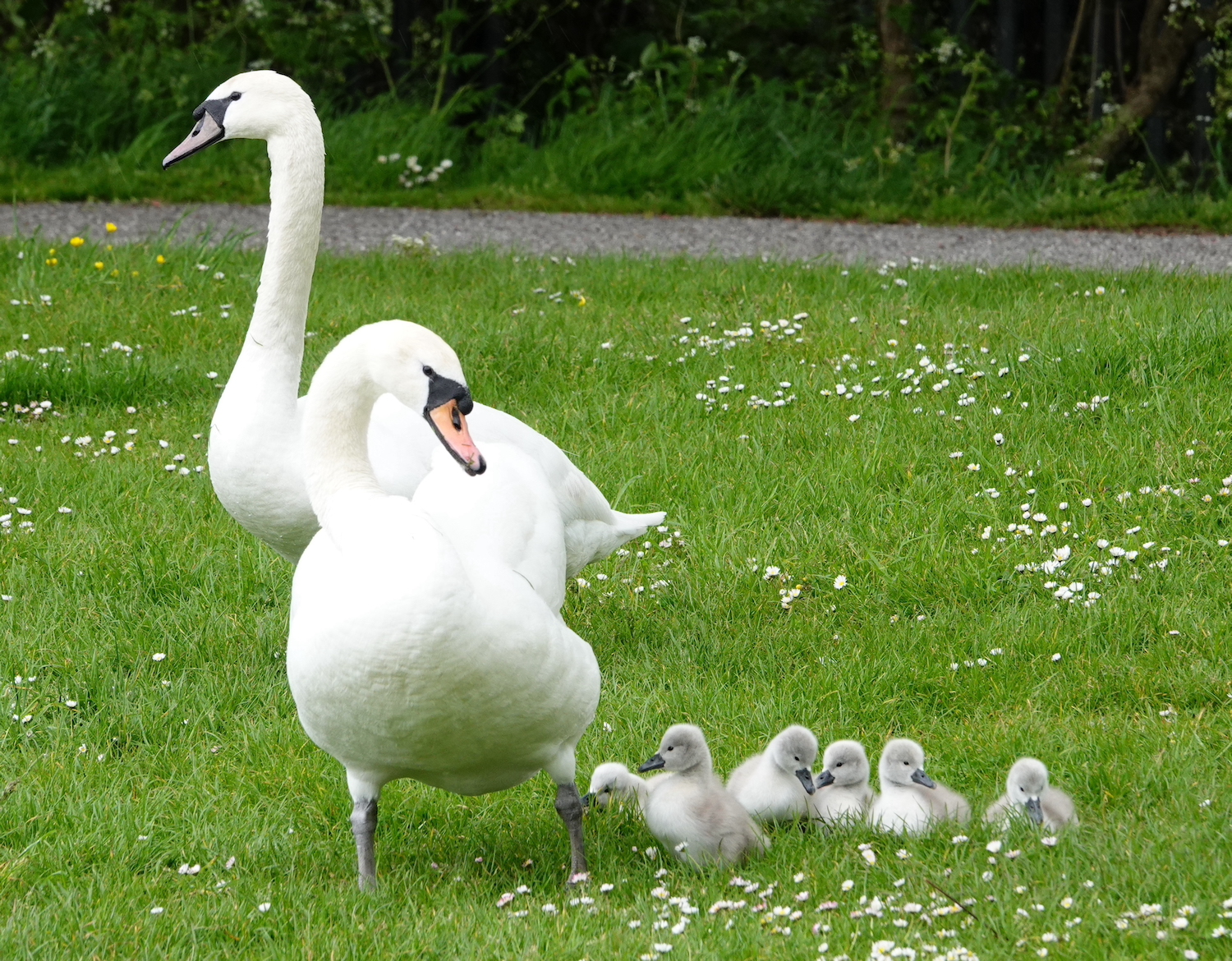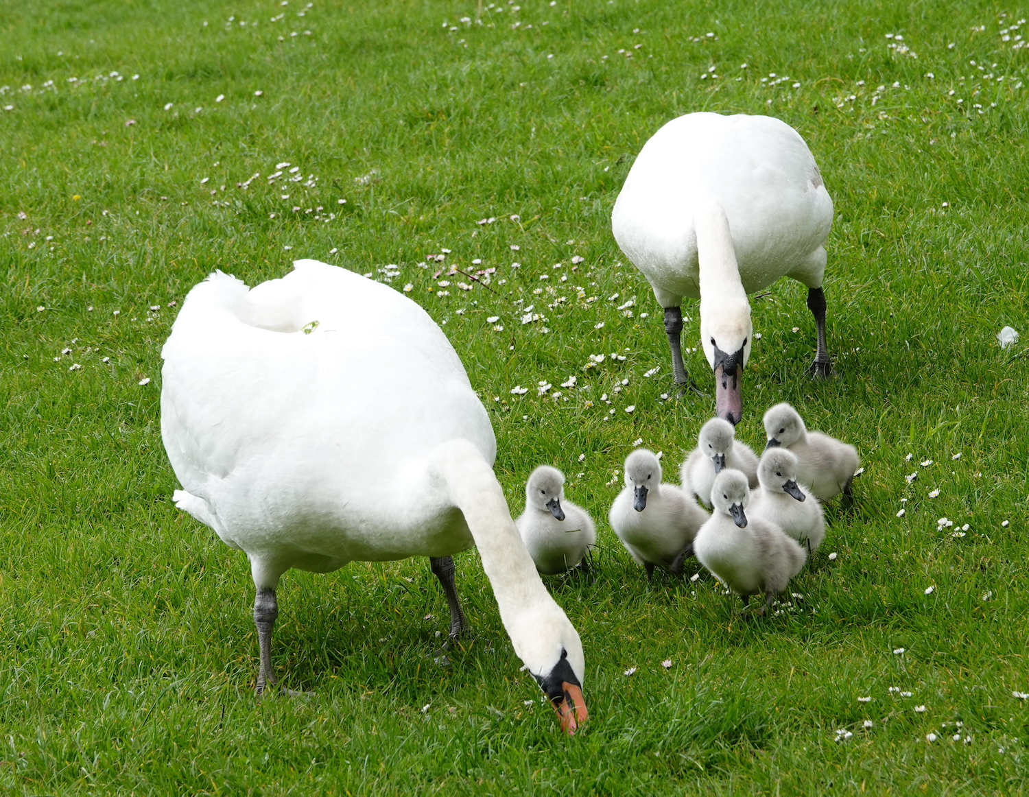 This morning, cuteness x 6! We think the nest was one right near the cafe. Reed Warblers are still singing in both reed beds, Cetti’s Warbler was shouting somewhere near the cafe, Grey Heron far side of W lake and the Lesser Black-back was yelling whilst we had our coffee under the trees in the car park. Two Swift flew over whilst we sat there.