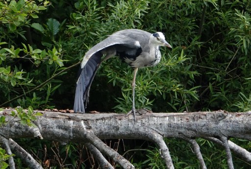 Nothing terribly exciting in a quick walk round this morning. A nice patch of the 100’s of Pyramidal Orchids in E paddock, a Meadow Brown [1 of only two Butterflies seen, the other being a Speckled Wood], a posing Moorhen chick [one of 7] showing off its long toes, an adult Little Grebe creating a nice wake pattern on W lake, one of two Grey Herons that have been around for a couple of days, wing stretching on the fallen tree by E lake that is sometimes used as a perch by a Kingfisher, and an adult Carrion Crow feeding a juv in W paddock. Interesting to see that the adult’s nictitating memrane was across the eye during the act of feeding the youngster. This was the case in the other three shots I took.