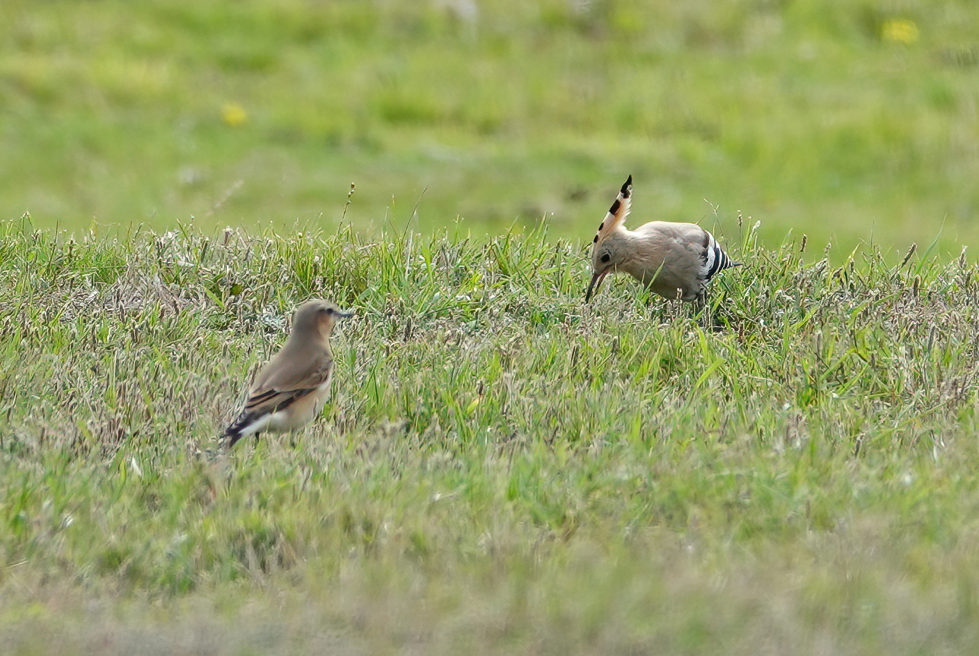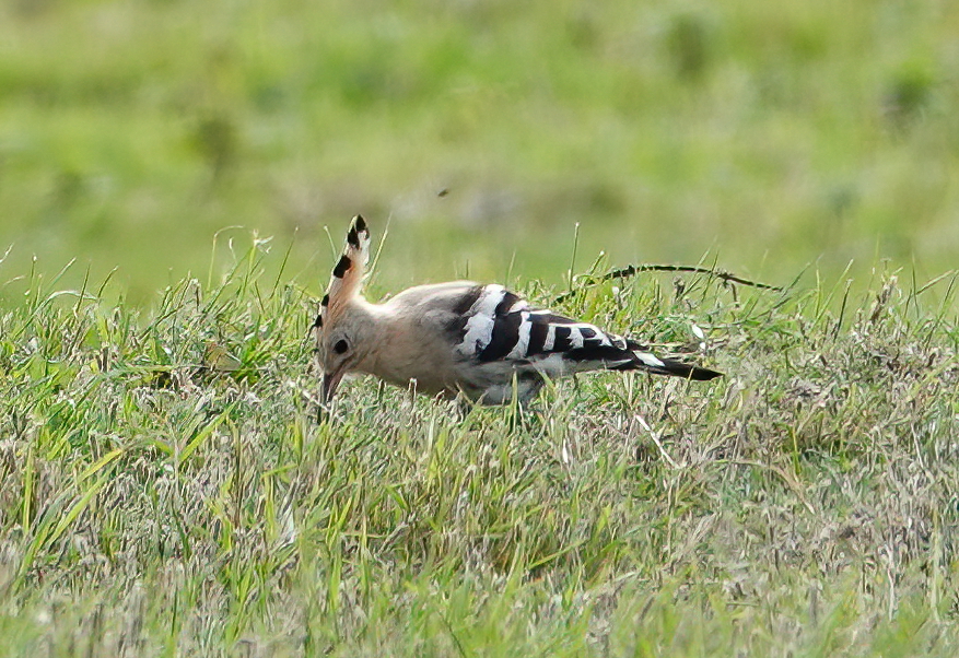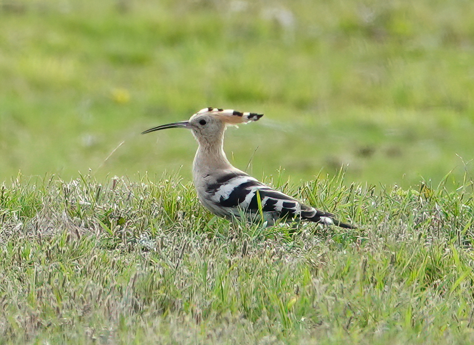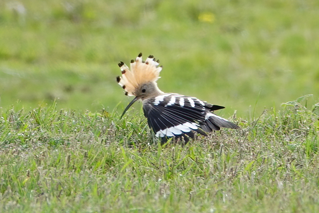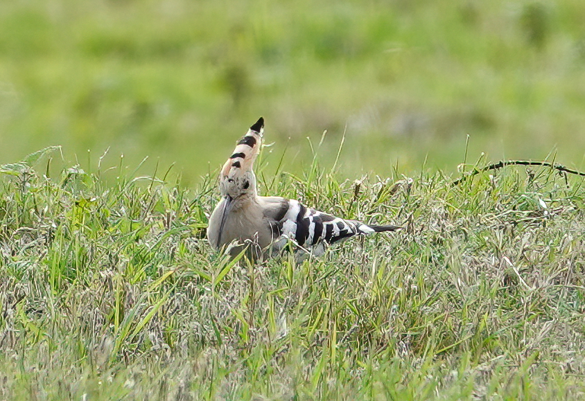 Managed to find a ‘window’ to drive down to KNNR and walk out to Sker Farm to see the Hoopoe found by GBC trustee Strinda Davies. It performed pretty well in the field it is currently calling home, finding plenty of what looked like black caterpillars to feed on. At one point it was irritated by the sudden arrival of a Wheatear and raised its crest and spread its wings.