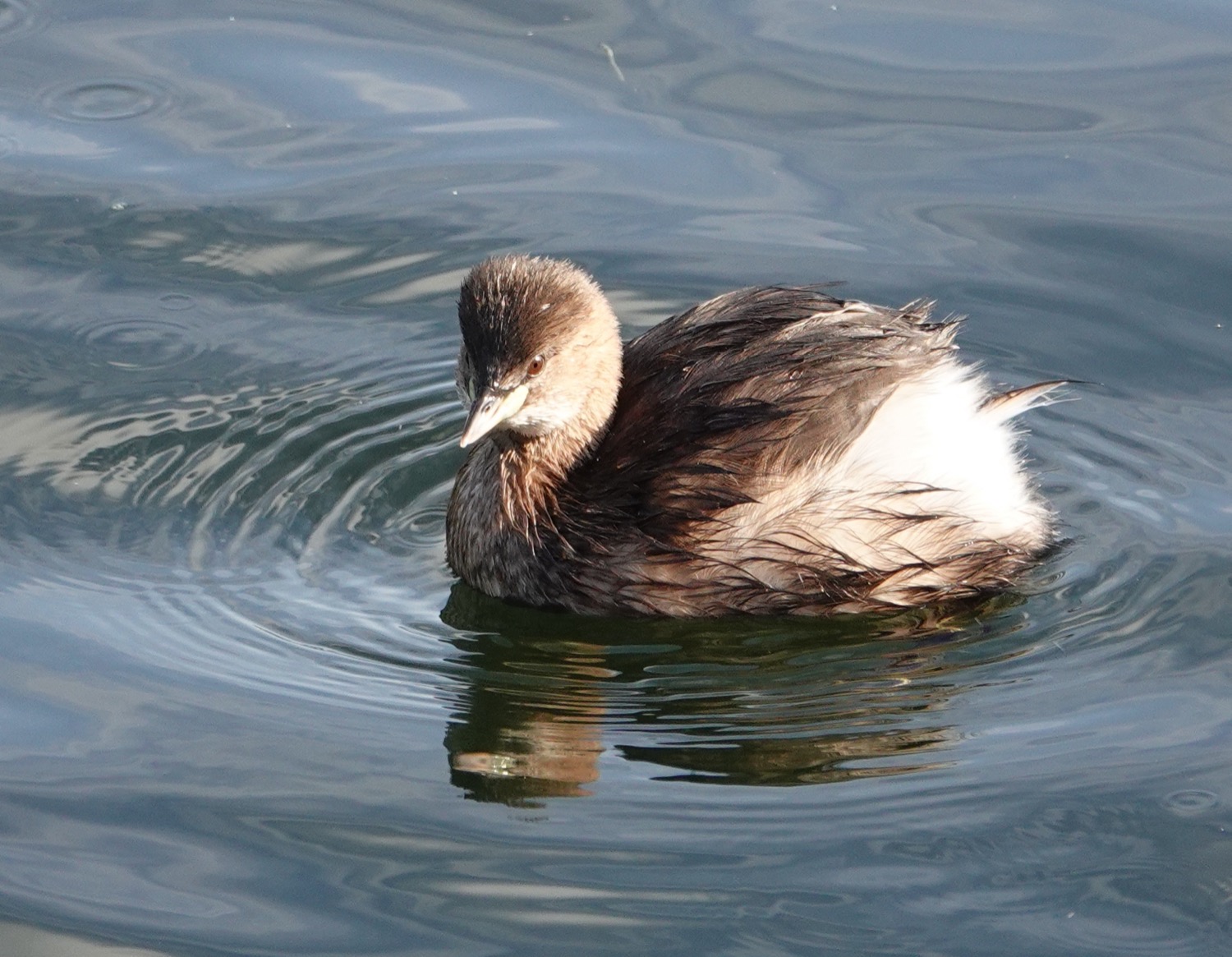 Pretty quiet at the moment. W lake has 30-40 Tufted Ducks and there were cl00 Canada Geese on E lake. GC Grebes are now more or less in drab winter garb, and the Little Grebes are going that way too. The latter are usually pretty distant out in the lakes but I managed a few shots of an obliging one right by the main bridge this morning, which caught a fish. No sign of any Redwings yet although I have been looing for them – there are plenty of berries. By the dipping pond area a Grey Wagtail flew over calling a couople of times and looked as tho’ it dropped down to W lake. I’ve stuck in a pic of a juv gull that looked a bit odd – prob just a juv LBBG but I have sought opinions on social media.