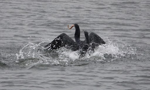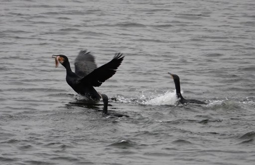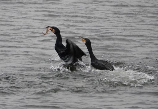 Bitterly cold walk across the barrage this morning – risked it despite my nasty cold, to accompany family members. There were about 8 Cormorants in the water just inside the locks and one caught an Eel and had some competition! Pretty c**p photos as I wasn’t prepared. By the inner barrage shore there was a pair of Goosander [crap pix there too – light was dire], and a Peregrine flew over at the Cardiff end. No luck with the Black Redstarts although Anne thought she had a v brief glimpse of one. There were 86 Tufted Duck just past the Norwegian Church [as at Cosmeston, nearly all of them drakes], and a Grey Wag was near there too.