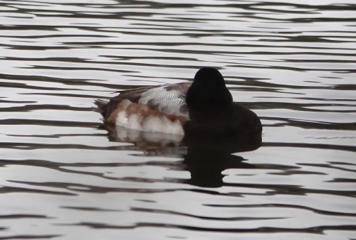 In a brief visit this morning: 1 1stW Greater Scaup was with the Tufties on W lake, plus a few Pochard, a pair of Shoveler and a pair of Gadwall. I couldn’t find the Wigeon that Graham Smith had seen. The Tufties still number about 200, and most of them are drakes. A Great Spotted Woodpecker flew over E paddock and I managed to snap a confiding female Pied Wag that was feeding in the mown patch just outside the entrance gate into E paddock.
