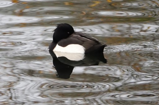 There were 15 Pochard on W lake Cosmeston this morning in amongst the hoards of Tufties, and there were 7 fem Teal on the far side. Couldn’t find yesterday’s Scaup on either lake, nor the Shoveler or Gadwall pairs. There were some nice reflections of sleeping drake Tufties, and a Grey Squirrel feeding on something natural rather than scraps thrown down by humans. A Jay was by the central Mile Road and the paddocks revealed a couple of Green Woodpeckers.