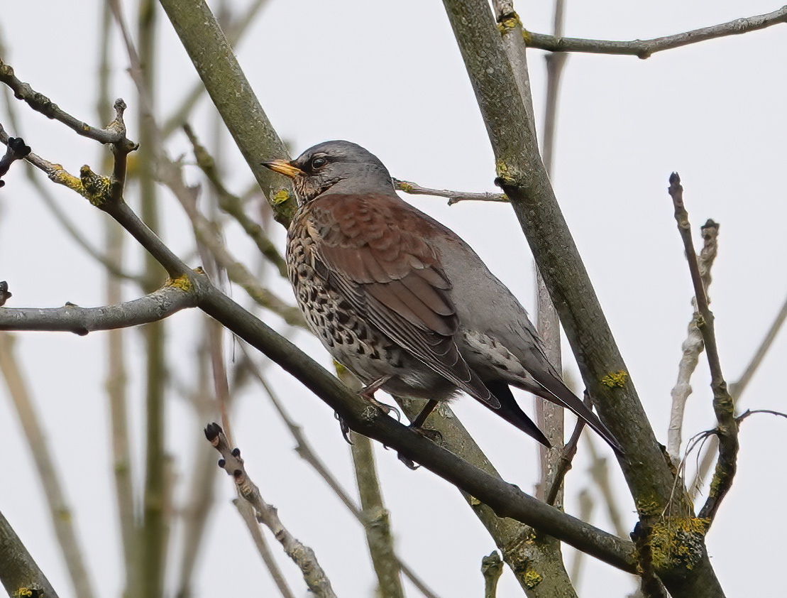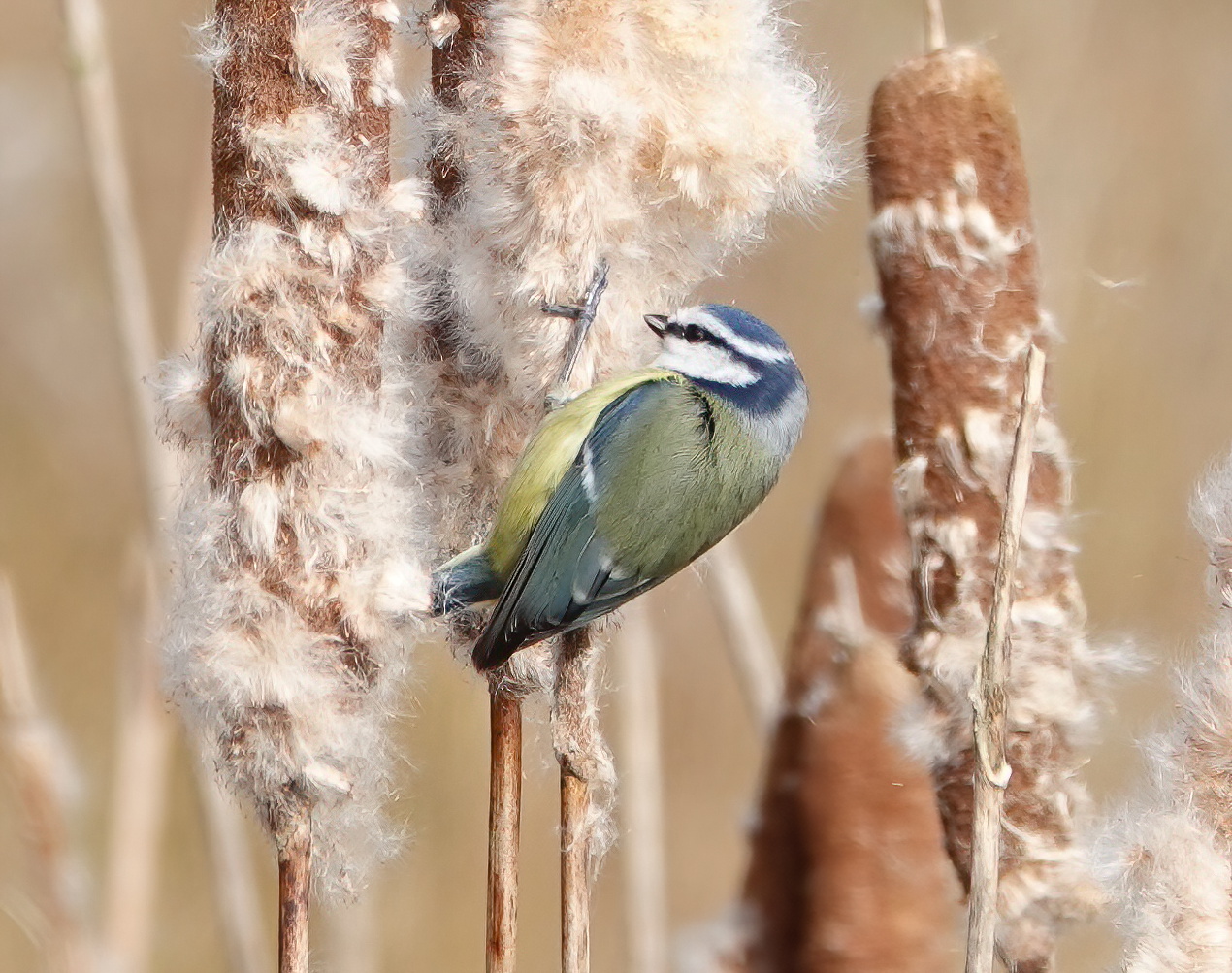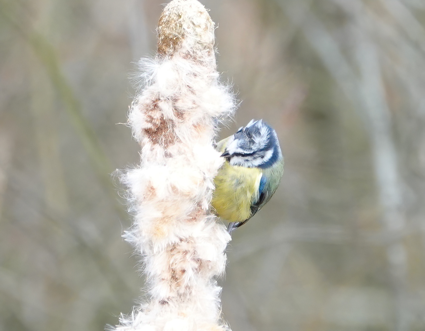 This morning, 24th there was a small flock [6 or maybe a few more] of very vocal Siskin feeding on an Alder just past the main bridge. On 23rd there was much finch activity just beyond the dragonfly pond, with Greenfinch, Chaffinch and Goldfinch. I had 8 Greenfinch together in one bush which is pretty unusual these days, and I got a shot of one singing. In the fenced off ‘snipe enclosure’ two Blue Tits were feeding on the bullrush heads and nearby there were two lone Fieldfare up in the trees.