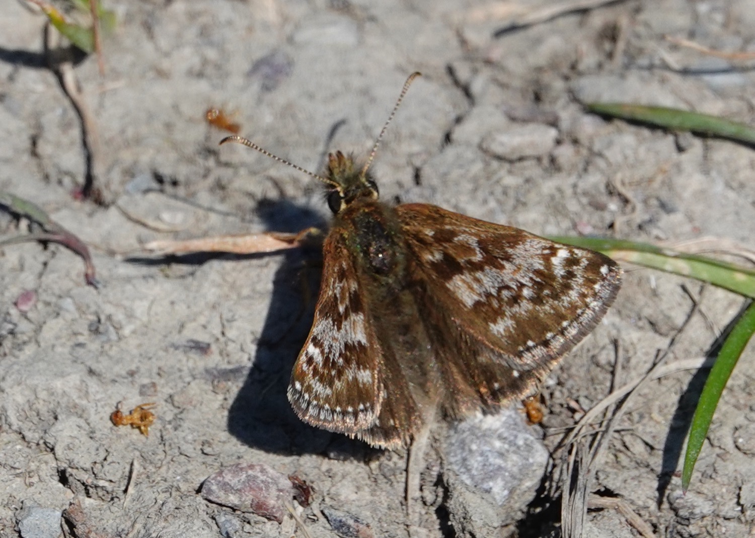 During a circuit this morning, a Lesser Whitethroat still singing in the snipe enclosure, and still refusing to show, c.10 Sand Martins and a couple of Swallows over the lakes, Common Whitethroat still on territory by the dipping pond, 1 poss 2 Reed Warblers singing in the E lake reeds, and a male Reed Bunting singing there. Leps of interest on Tuesday were Orange Tip and a Dingy Skipper [see photo], and a Large Red Damselfly. There were 3 active Coot nests that I could see. Some misc pix below.