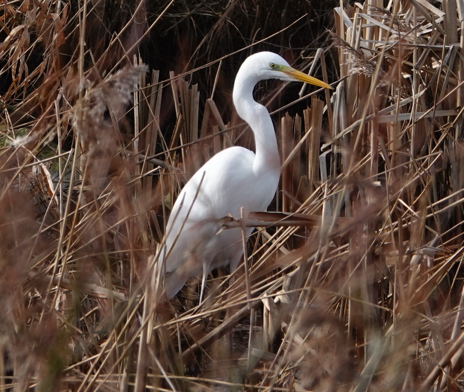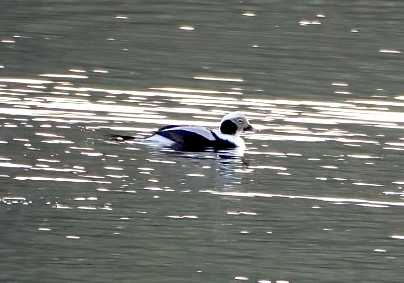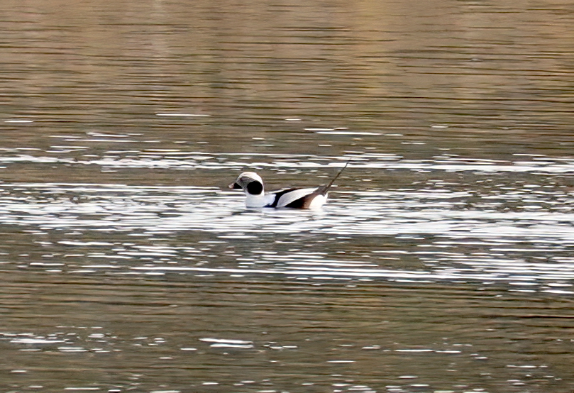 Lovely day today for our trip to Somerset to visit Chew Reservoir. We scanned the vast expanse of water from Herriot’s Bridge and Heron’s Green Bay. Nearly all common wildfowl were seen and sharp-eyed Alan Rosney picked out the much wanted ‘redhead’ Smew at Heron’s Green Bay – this tiny ‘sawbill’ was pretty distant, with a group of Coot and a Black-headed Gull, but scope views were OK. We dipped on the reported Scaup. It was good to see many Goldeneye, the males often displaying. Several Great White Egrets were seen including the one shown, dwarfing a Little Egret. Blagdon Reservoir was also visited for a reported Ring-necked Duck but we didn’t find that although there was plenty to see. Finally we dropped in at Barrow Gurney ‘tanks’ by the A38 and eventually found the reported male Long-tailed Duck [well spotted David Rich!]. A good day out with by my reckoning, 56 species – click here for the list.