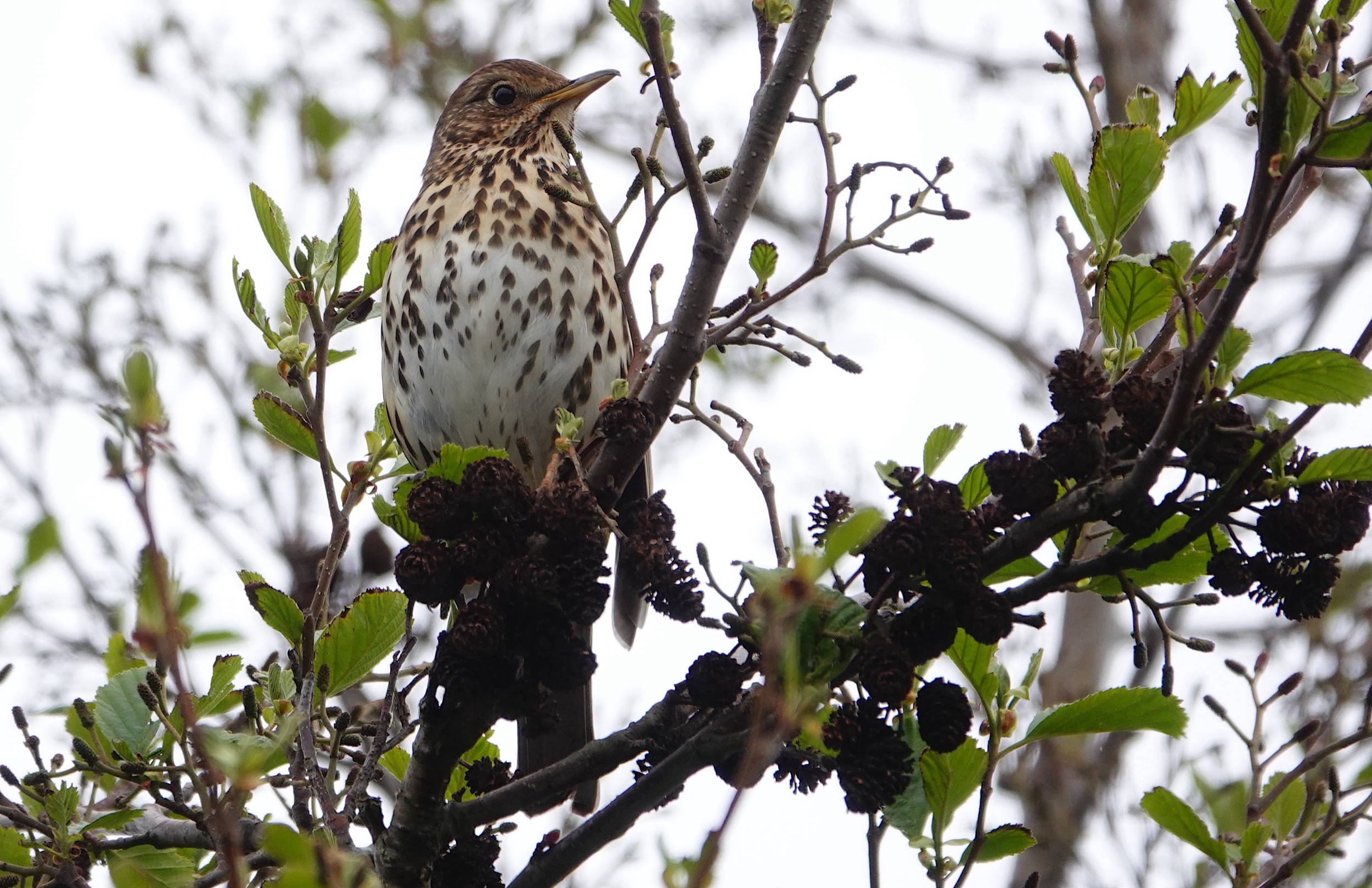 Two days ago at Cosmeston, a Treecreeper gave a rare opportunity to get some nice photos of it doing what it does best, creeping up a tree!, and also a couple of shots showing the camouflage and the cryptic upper part markings. A Song Thrush posed nicely near the dipping pond. Today a Grasshopper Warbler was found reeling in a hedge at the top of the field above Sully Brook, by Graham Smith. Sadly it had stopped and gone into hiding when I got there. There were 2 possibly 3 Common Whitethroats song flighting in that field and a Lesser Whitethroat was singing from cover, in the central area of vegetation. Also Cetti’s Warbler singing from down by the brook itself. This morning whilst leading a walk in the grounds of the Kymin in Penarth, we saw a pair of Sparrowhawks mating in a tall tree. Something I’ve never seen before.