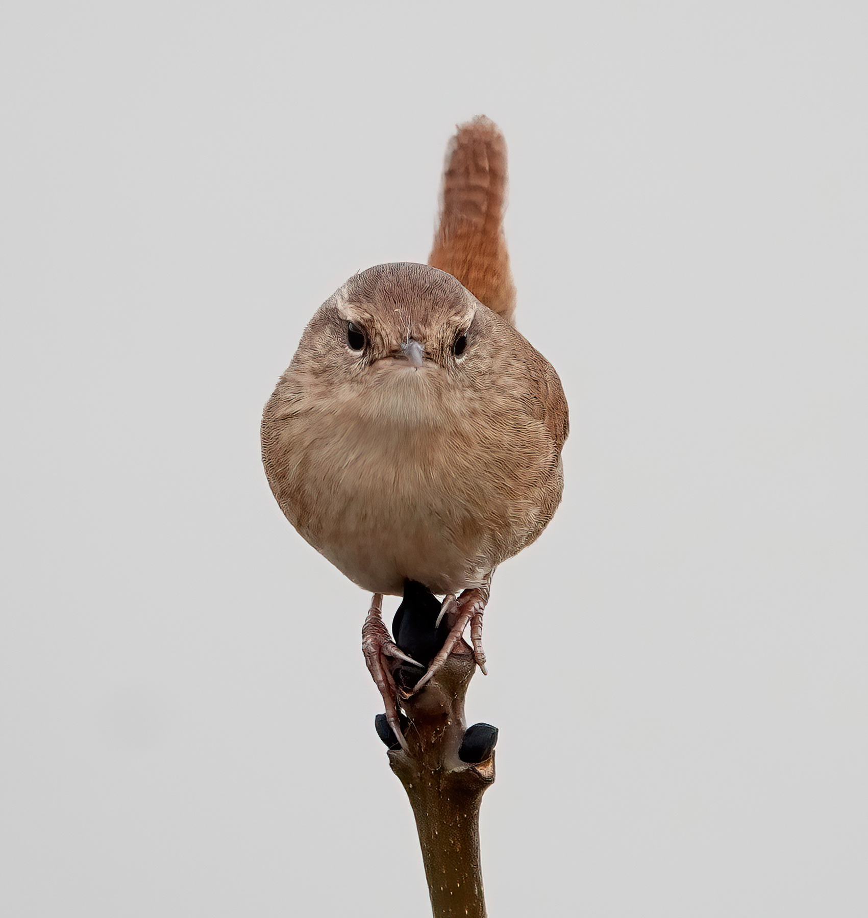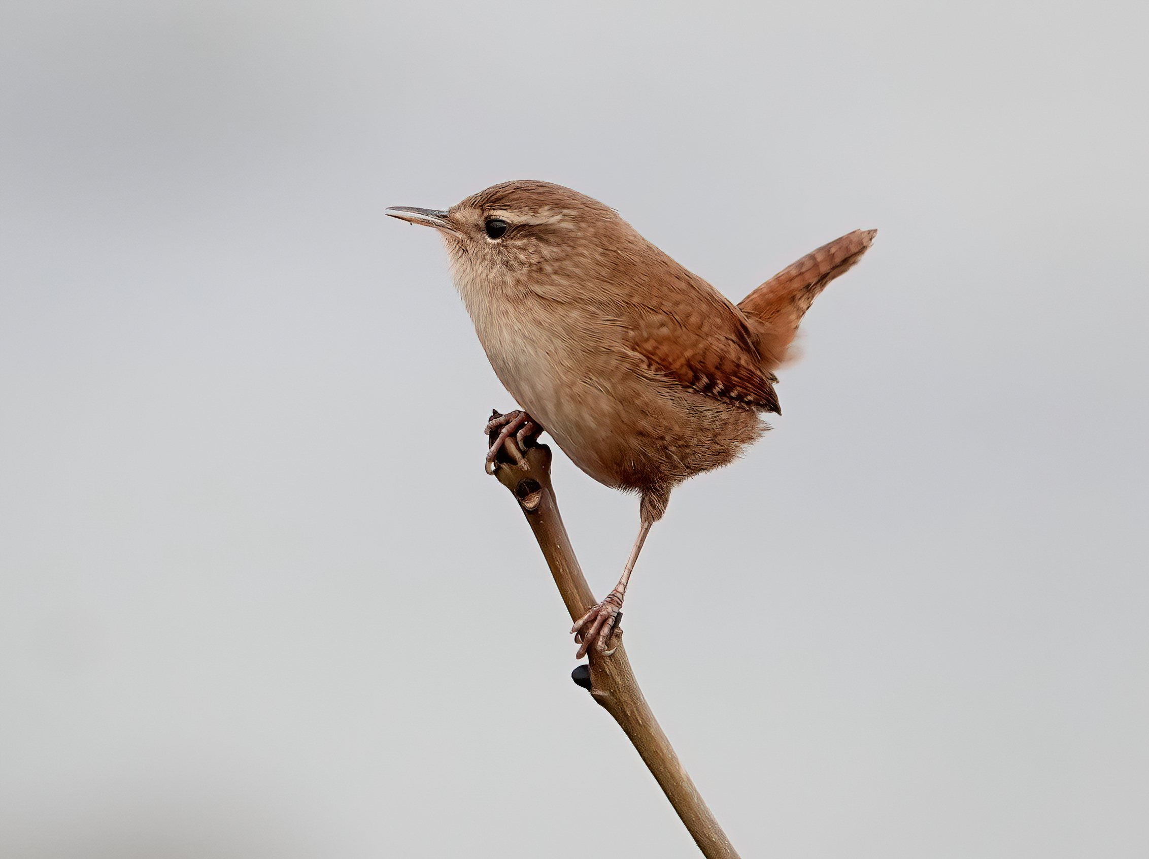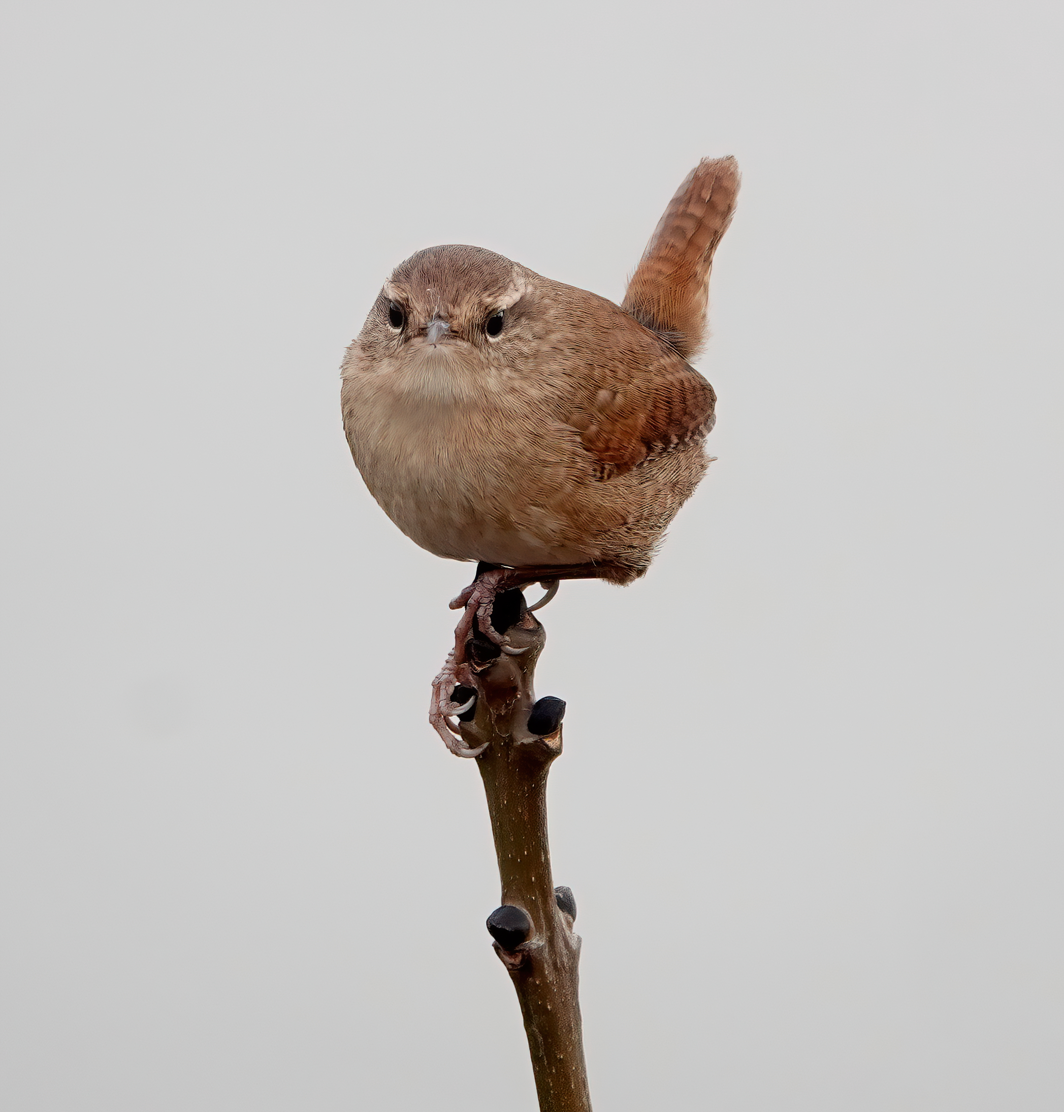 Regular Cardiff Bay birder Gareth Stamp had an amazing 3 Firecrests together this morning, in scrub & trees near the old Custom House along the Cardiff side of Penarth Head. They had moved on to feed somewhere else by the time I arrived although I did check all the trees up the hill to Paget Terrace. As I walked back to the car park area, a Wren was scolding away from the top of a vertical twig stuck in the rocks of the outer harbour, so I got a few nice portraits.