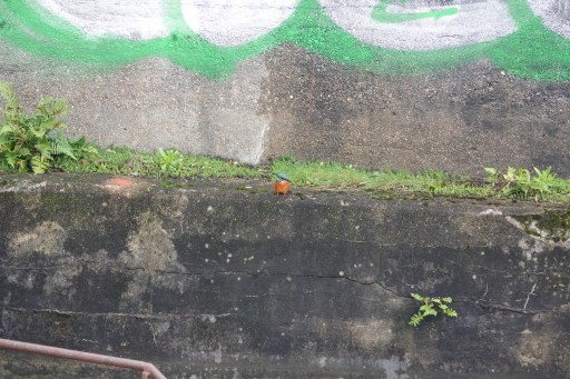 Decided to avoid the mud of Cosmeston and walk across the barrage this morning, then around Porth Teigr and back. Just off the orange buoys inside the barrage locks there was a female Goosander and a single Common Gull on the buoys, and a Rock Pipit flew in and landed by the inner shore. Farther along a flock of around 12 Linnet flew past, as did a flight of 16 Cormorant over the Bay. By the feeder dock where the Sand Martins nest a lady pointed out a Kingfisher sitting on a railing, which then flew down to a ledge on the dock wall. I grabbed a pic but it was rather too far off for a decent image. Round at the Porth Teigr area by Roath Basin there was a decided no-show by any Black Redstarts, although it was quite gusty. A Chiffchaff was flitting around in scrub by the bridge next to the Gloworks building [Common Chiffchaff I’m sure – I detected no greyish tones suggestive of Sibe], and there were just 3 Meadow Pipits on the rough ground by Gloworks. On the return leg there were 3 Common Gulls on the orange buoys and 53 Cormorant sitting along the inner jetty [there had been none there on the way out]. Kingfisher below, 1 as taken on max Zoom and one cropped from the same image as much as I dare.