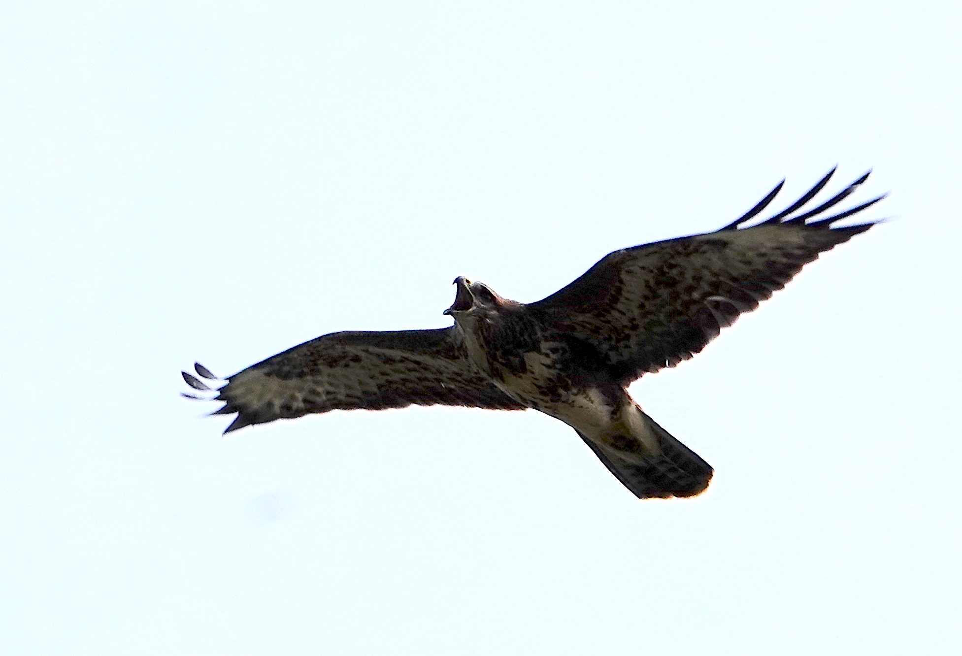 There’s been a very vocal Buzzard at Cosmeston recently, often up circling with a few others. It was there again this morning calling and drifting towards me and not too high so I prepared for some flight shots. Managed a few which needed some post processing as they were a bit silhouetty. Dead chuffed to get a couple where it was in mid “mew”. Pretty sure it’s a juvenile due to the heavy breast streaking and the pale tips to the upper wing coverts viewable in one of the ‘wing down’ images.