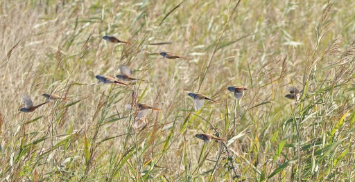 At RSPB Minsmere i was lucky to spent at least a hour with 30 to 40 Bearded Tits singing, that alone amazing – trying to catch the speedy birds on top of the reed heads who seem to known when they in focus, time to go flying but capture few images of they airborne made my trip