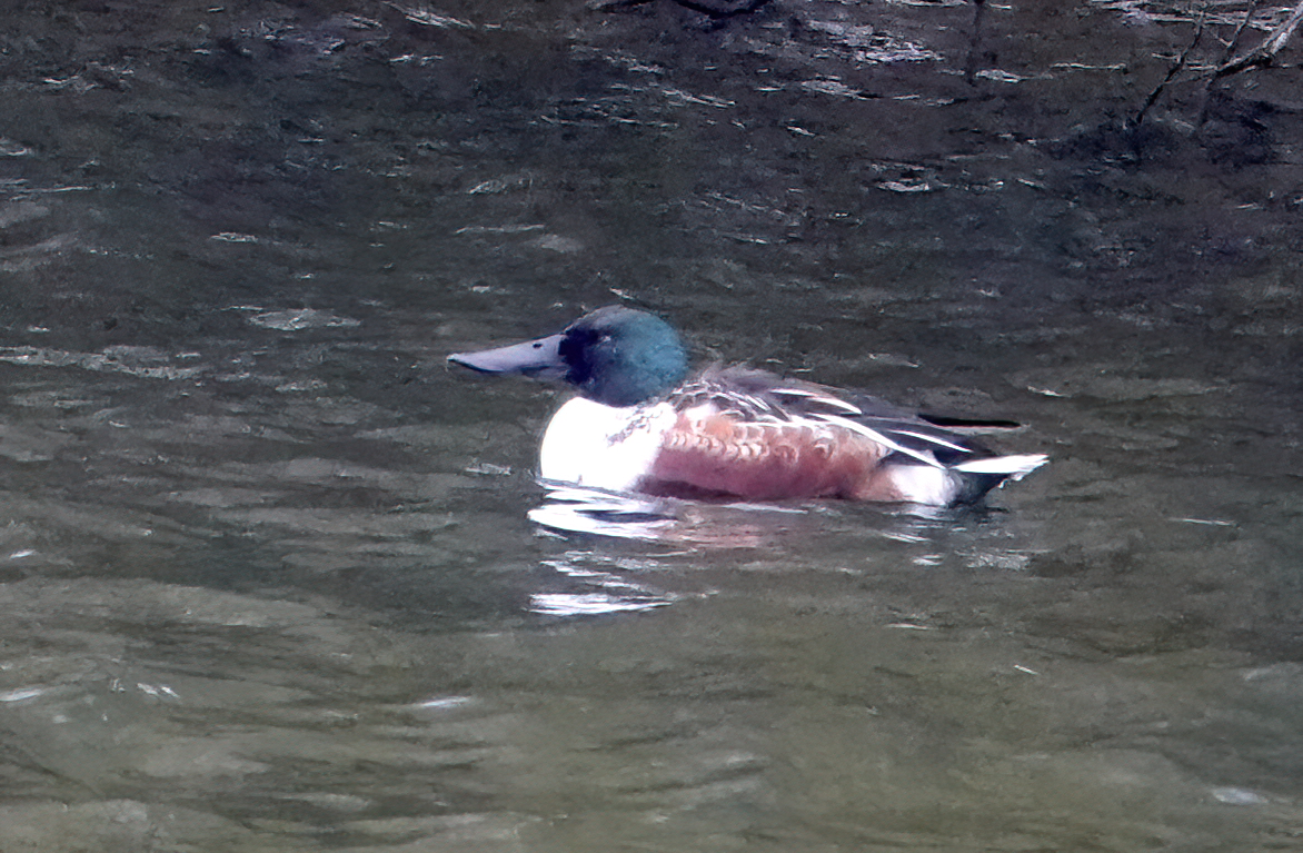 On Saturday at the w/e a lucky birder found a Dartford Warbler at Lavernock. It proved to be a little elusive but I visited today after my usual Cosmeston circuit to try my luck. There was no action in the scrubby field where it had been seen, but I eventually noticed 2 Stonechats on the adjacent hedgerow. Some folk may not know that wayward Dartfords often associate with Stonechats, and so it proved to be. I only got a brief view but the little devil popped its head out from the dense cover to give me a satisfactory glimpse then back in it went. The Stonechat pair relocated to an adjacent field and I watched them there for a while in case they’d taken the Dartford with them, but got no further action. No pic of the Dartford Warbler but I did take some pix of the Stonechats, although they’re big crops. I also noted a Meadow Pipit, and a male Kestrel was hunting over the field. Also below a drake Shoveler at Cossie and a Woodpigeon head shot [it was resting by the main bridge].