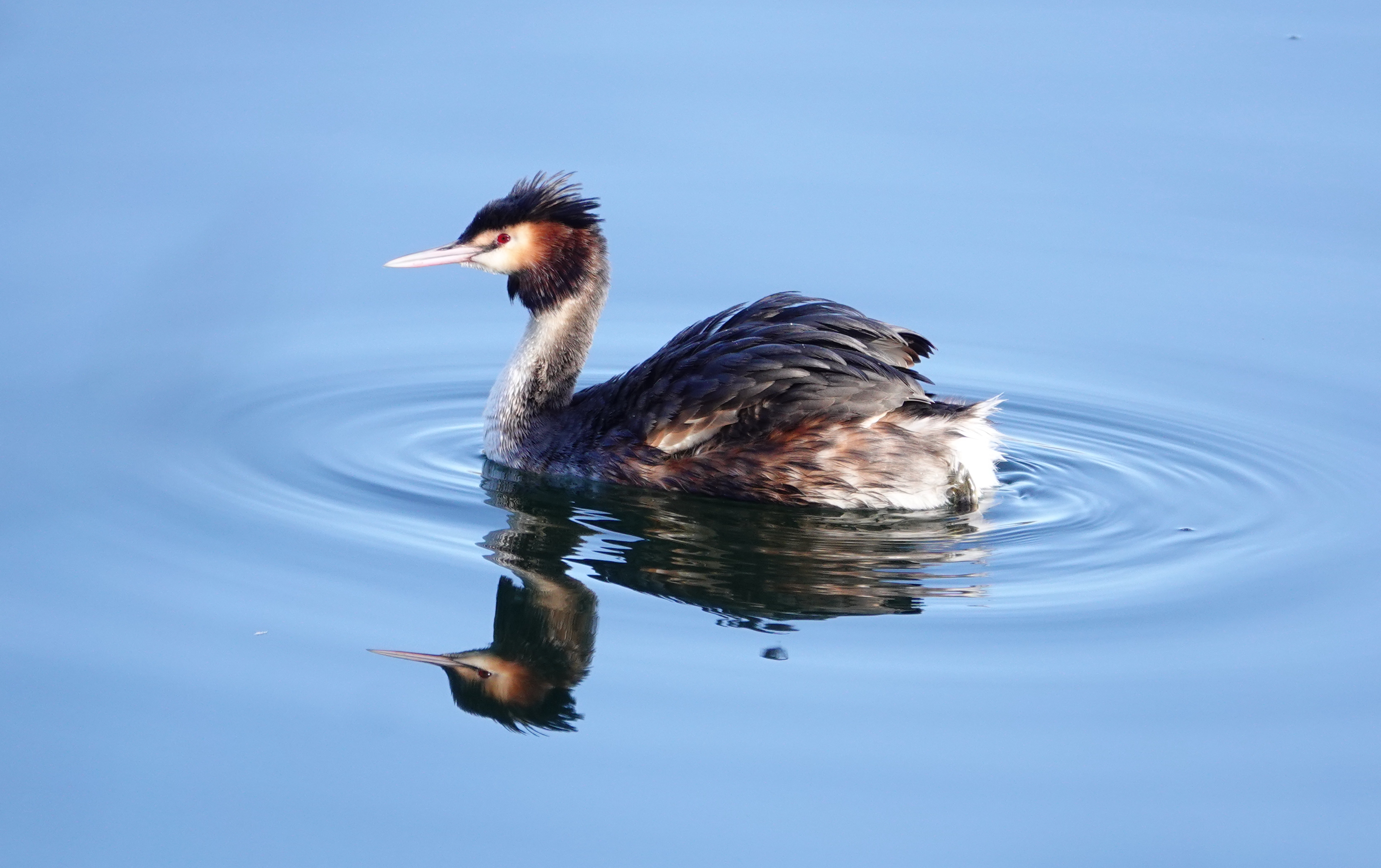 Nice sunny walk at Cosmeston this morning. E. lake was dead calm, hence I got a nice Great Crested Grebe reflection. A Marsh Tit plus Coal, Great, Blue and Long-tailed Tits , and a Nuthatch, were coming to seed on a gate by the S. end of Cogan Wood. I managed to get one shot of the Marsh Tit without any seed in the image. There was a Common Gull on the W. lake posts and I was told of 2 poss 3 on the kayak launching ‘dock’ on E. lake. Other than that, the usual Tufties and Pochard were on W. lake and more Tufties on E. lake.