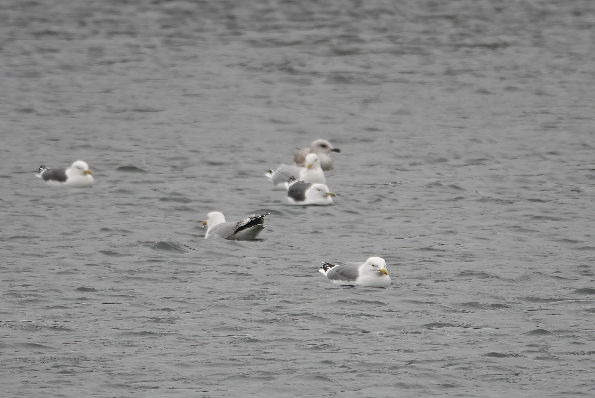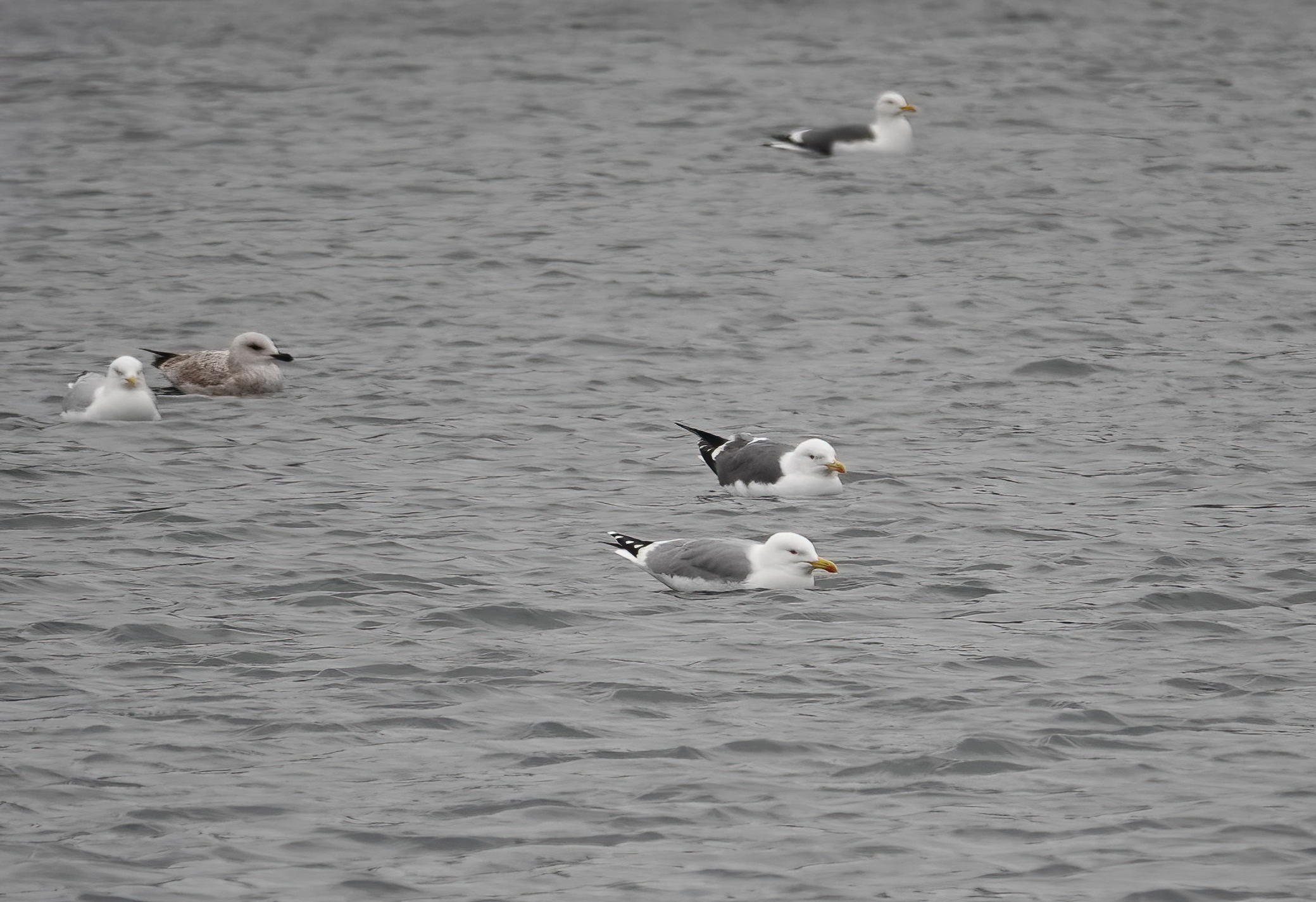 Nothing too exciting. An adult Yellow-legged Gull was on E lake, Cosmeston this morning – actually more like midday. The 1st YLG I’ve seen there in ages. Mid lake so pix are huge crops. In the two ‘groups” it’s the nearest bird. Note mid, warm gery of upper parts in comparison to the dark slate gry of Lesser Black-backs present and the silvery grey on the couple of Herring Gulls present.