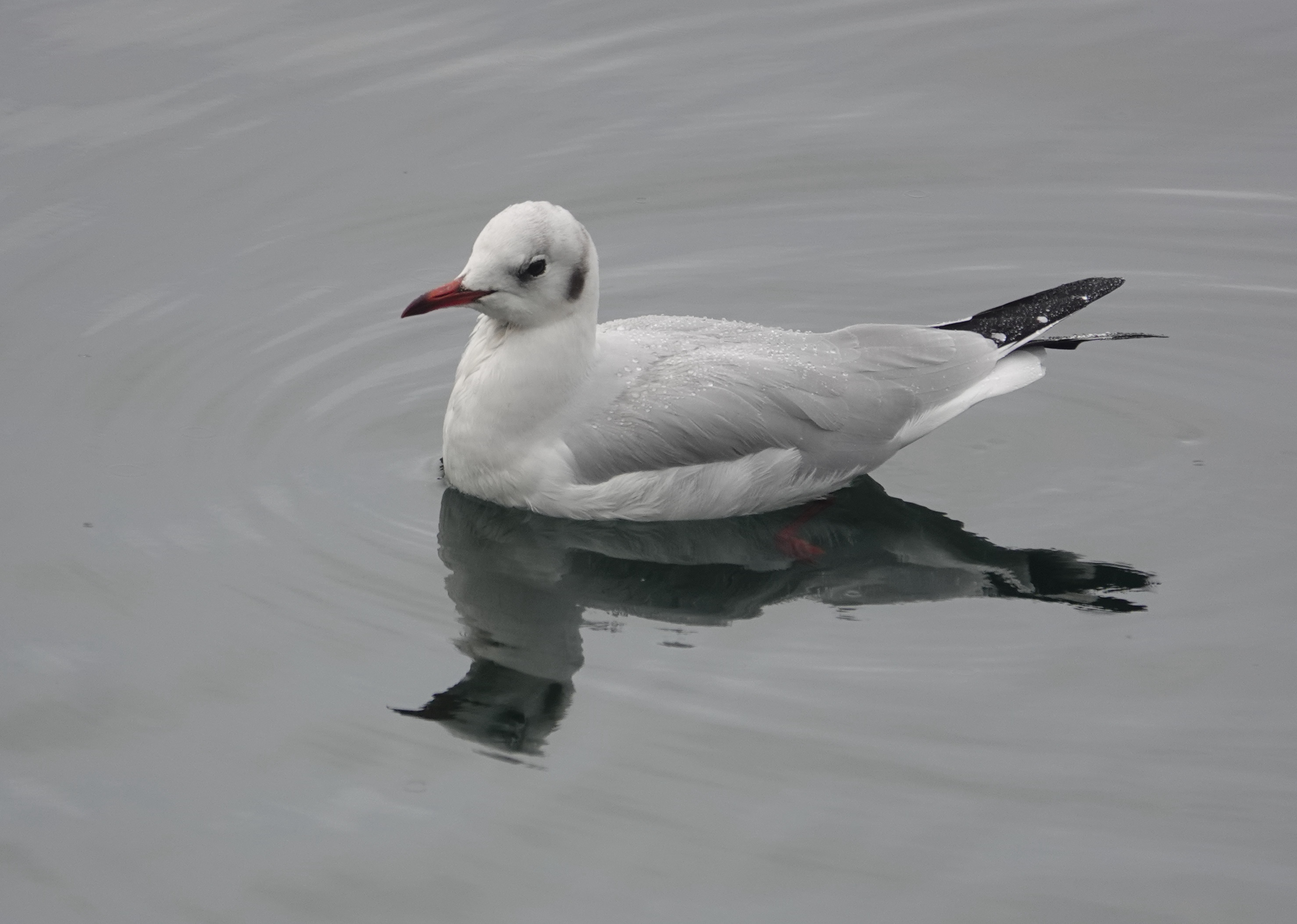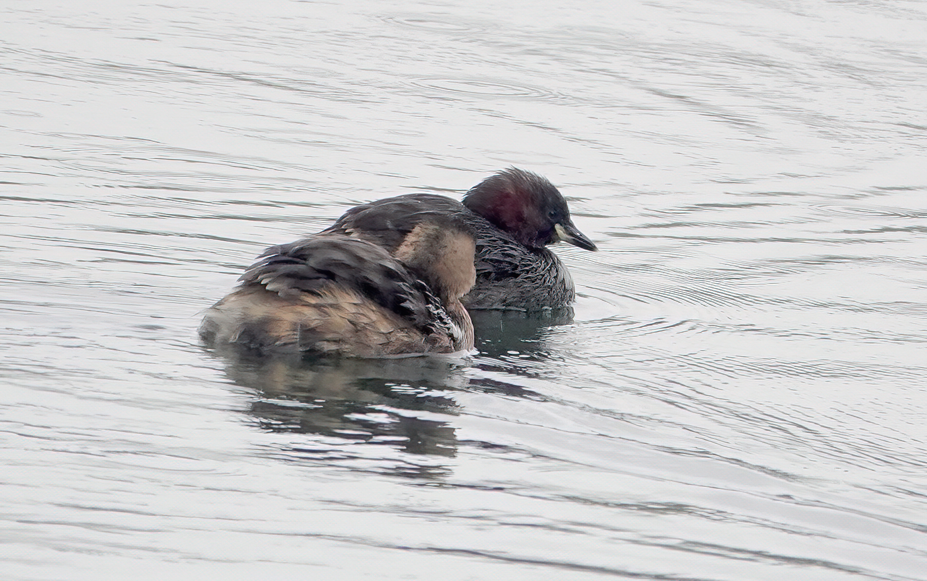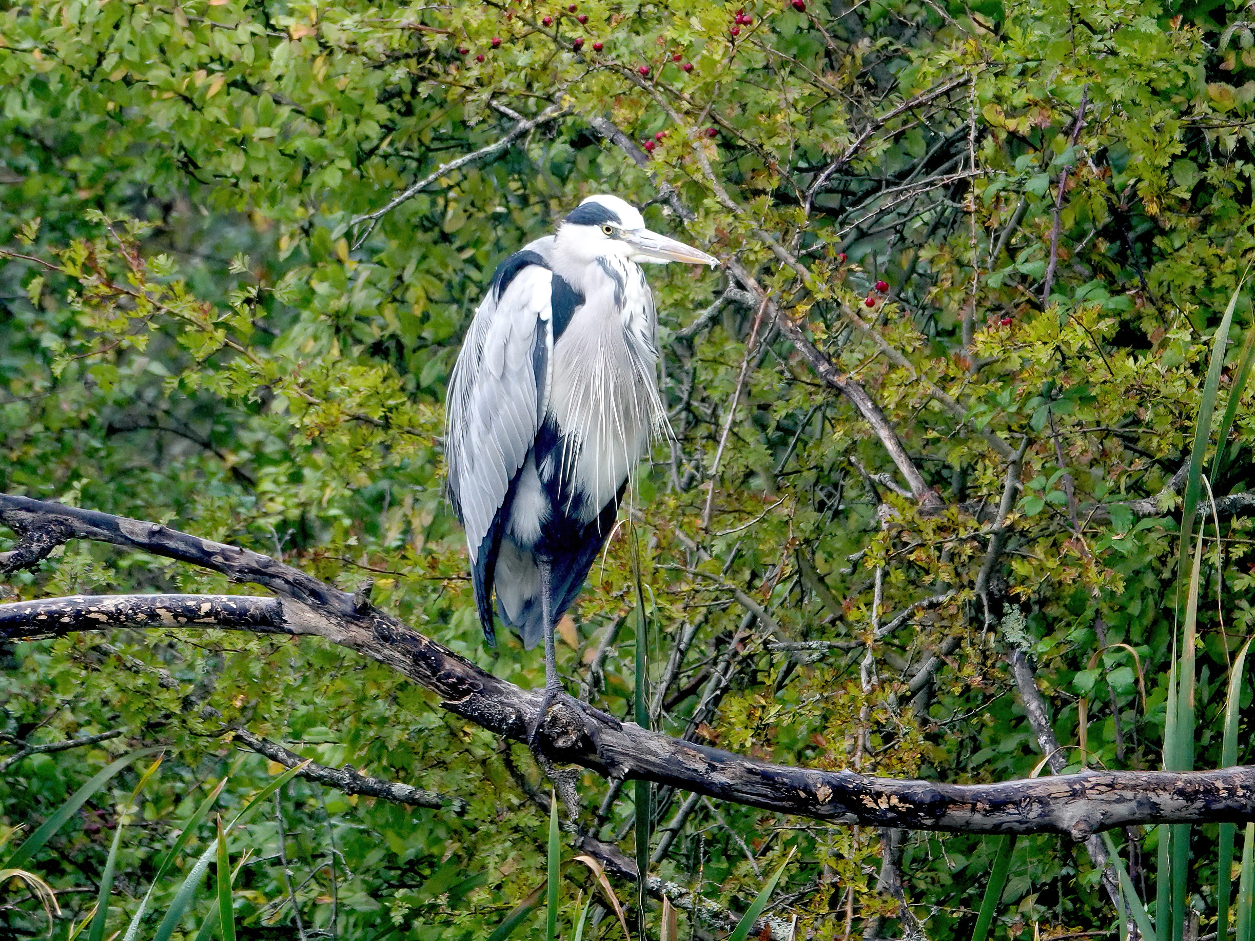 Nothing exciting around, and i got caught in the unexpected heavy drizzle!. Had a Great Tit feeding from my hand by the Medieval Village. A Heron was sitting rather dejectedly in the drizzle in the favoured tree near the main bridge. A dog exploring the trees there flushed it and it flew & landed on a tree on the conservation ‘island’. It was an adult with some impressive plumes. What I assume was a pair of Little Grebes were together on E lake near the shore.