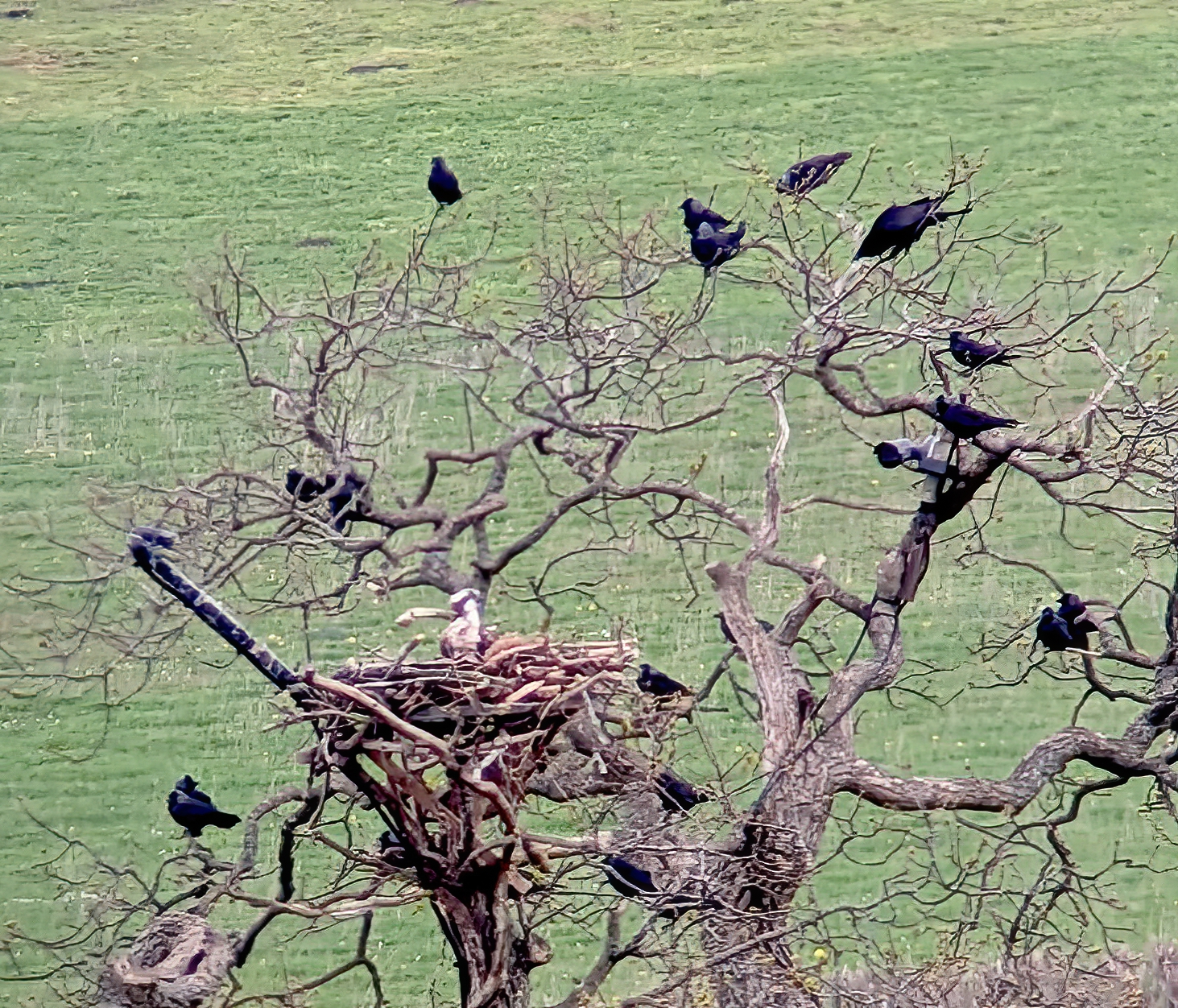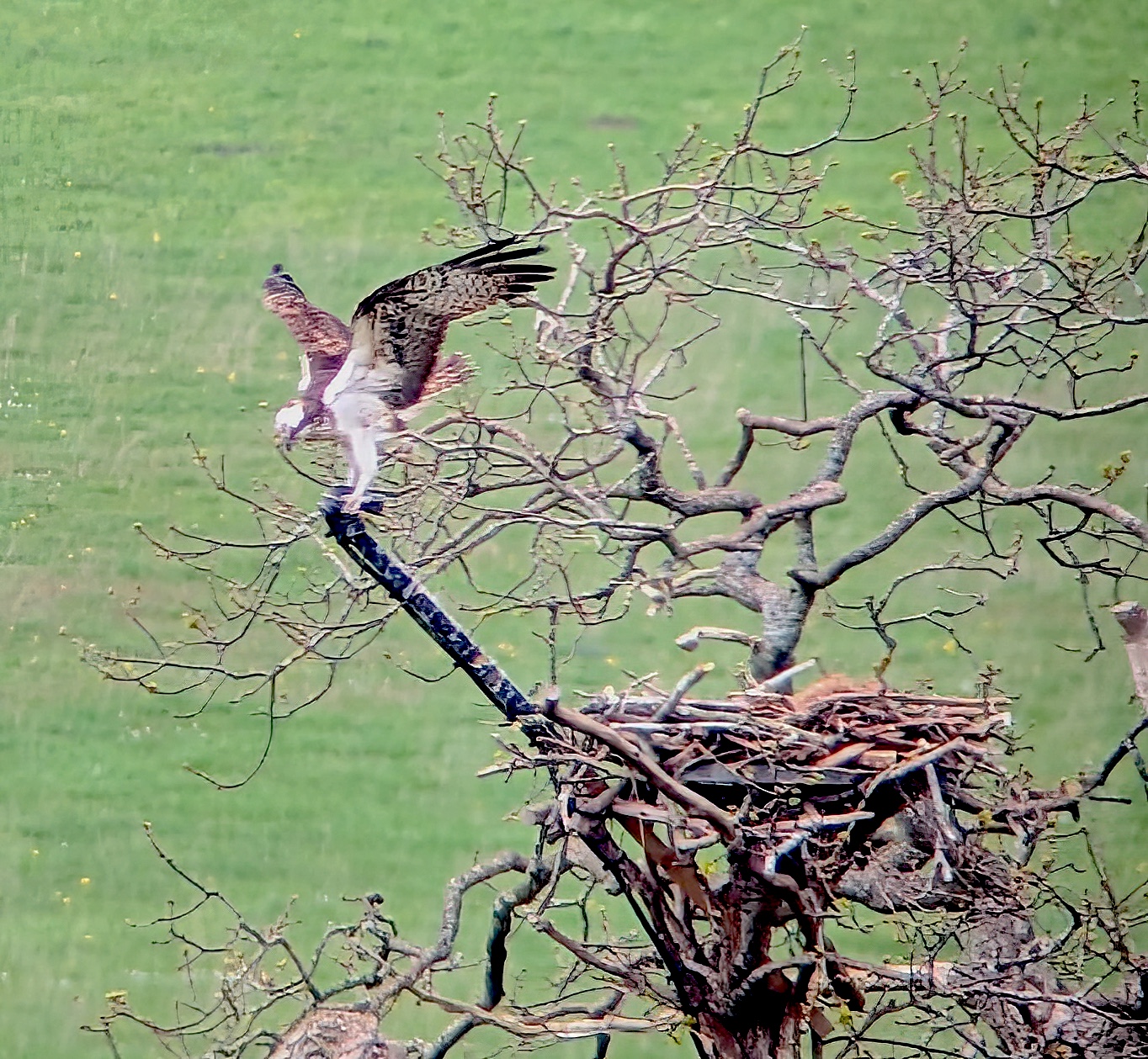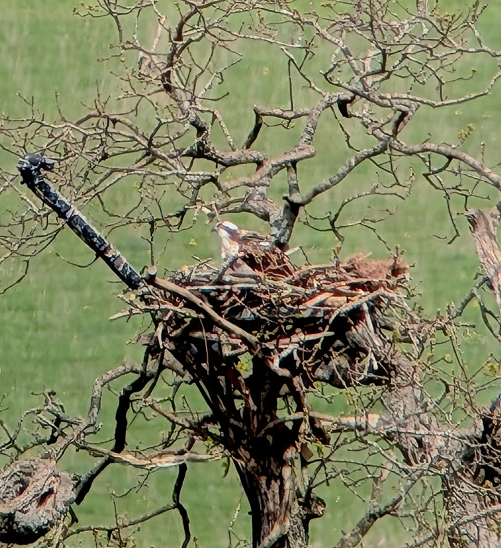 19 members shivered in the cold at Craig Cerrig Gleisiad this morning, gazing up at the Cwm hoping to see Ring Ouzel, We did hear 1, possibly 2 birds calling but they weren’t being acive enough to betray their location. A pair of Peregrines and a pair of Kestrels chased around and a Red Kite circled and sat in a dead tree. Other highlights were a male Wheatear and a male Stonechat and a few singing Willow Warblers. After a lunchtime snack in the layby some of us went to Talybont-on-Usk and walked along to the Usk Valley Osprey viewpoint by the canal. We were treated with great scope views of a bird in the nest tree and flying around, being harassed by a Red Kite. Whilst in the tree it didn’t get much peace due to a hoard of irritating Crows & Jackdaws. The photos are cropped images I managed to ‘phone-scope’, plus the offending Red Kite.