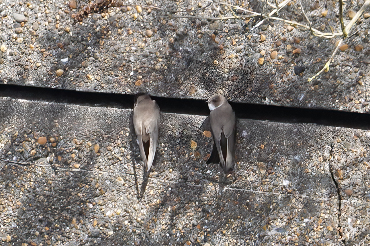 Anne & I did a walk from Penarth Marina, across the barrage to the Norwegian Church for a coffee & snack, and back again. There was much action in the old dock where the Sand Martins nest – see the pix below and a short vid from my Youtube channel. I’ve never seen a Sand Martin that close before. The old dock also had 2 pairs of Tufted Ducks and a Grey Wagtail. In the scrub by the path beyond the swift tower a Common Whitethroat was song flighting and there were 6 Shelduck on the mud outside the barrage. A few Swallows were over the bay and a House Martin entered a nest cup on one of the Penarth Marina houses. The adjacent R. Ely embankment had 1 Common Sandpiper and 2 Turnstones