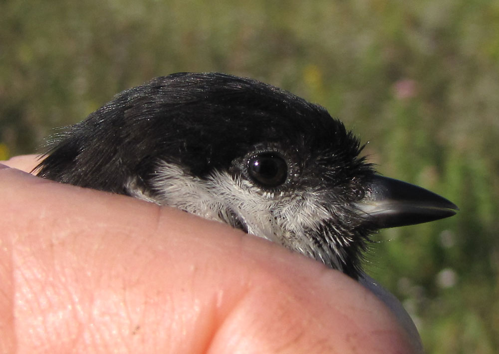 Marsh tit caught by the pool this morning. As far as we know it’s the first ringed at Kenfig. We also caught three grasshopper warblers and a garden warbler in a total of about 50 birds. A green sandpiper and two common sandpipers were on the east shore (per ND), the GWE was still present and the first two tree pipits of the summer/autumn flew over.