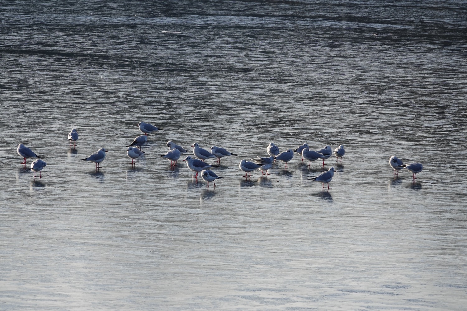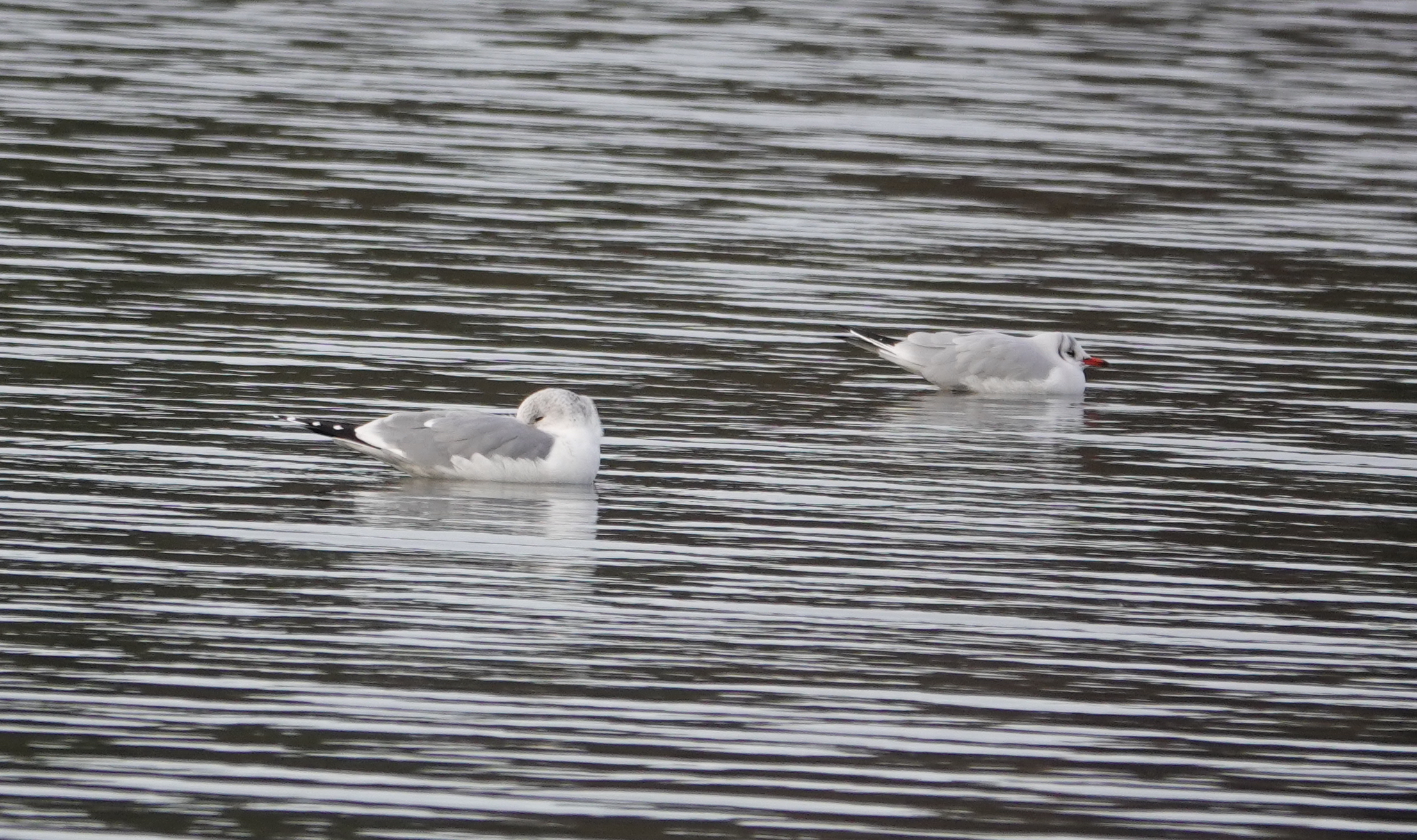 I made a brief morning visit on a very very cold day, to walk our dog Poppy, but didn’t linger too long – the cafe was too tempting.! On W lake there was a sleeeping Common Gull [not to so common these days] and a female Pochard was still present from yesterday. From the middle viewpoint on the Mile Road, I saw a Kingfisher whizz across W lake. 3 Gadwall were present yesterday but I didn’t notice them this morning. Most interesting was in a corner of W paddock where there were 8 Song Thrushes feeding together, with a couple of Redwing. I’ve never seen that many Song Thrushes together before – they’re usually pretty solitary feeders.