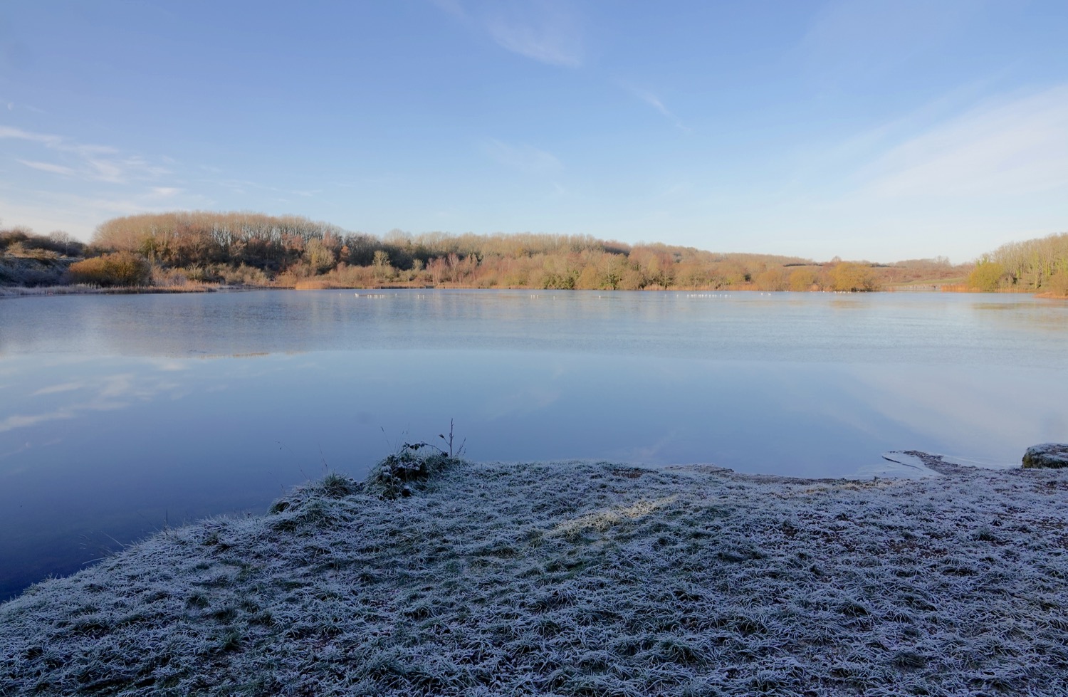 Very frosty morning at Cosmeston during the Dec 15-17 cold snap – minus 3 deg. There were 57 Teal on W lake, about 120 Tufted Ducks, an unusual sight of 8 Song Thrushes feedijng together n W paddock with 3 Fiedfare.