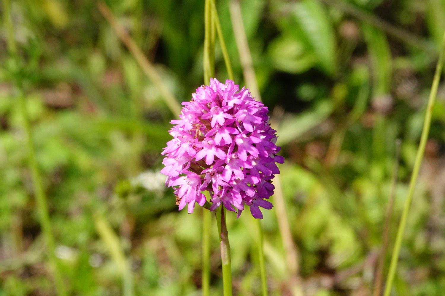 Fairly brief walk around Cosmeston this morning as other things to do, and it was too hot! Not much of birdy interest apart from 10 Tufted Ducks on E lake [a sign of autumn] allthough as we left two trailers of small sailing dingies arrived so hopefully the Tufties moved onto W lake. Also 3 young Gt Crested Grebes are doing well – too distant to photograph. A Heron in the small tree opposite the main bridge posed nicely. Other than that, photos are of Large Skipper female. Pyramidal Orchid [still a large number in flower], a Dwarf Thistle, and the first Ringlet I’ve seen there this summer.
