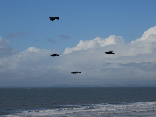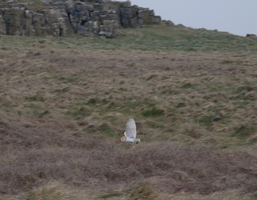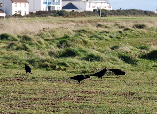 A group of 6 Choughs on Locks Common this morning. The last time I saw them here was also after a big storm. Perhaps the salt spray brings up worms in the turf near the sea? They were busy pecking away at the turf, and the local crows were trying to drive them off. Also a Kestrel hovering.