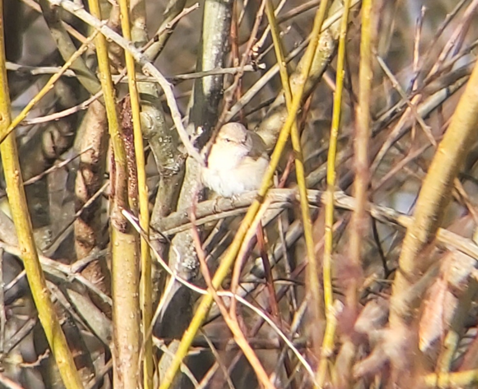 Earlier this afternoon a pair of Chiffchaff were moving through the vegetation fringing Pwll y waun lake, but on closer inspection both looked generally pale grey brown above with largely white underparts, no real olive hues at all. I managed to get good views for several minutes and managed to get a pic whilst one stopped to preen in the winter sun. Didn’t hear them call but the plumage definitely suggests Siberian Chiffchaff although the pic, with the sunshine, generally makes the plumage appear warmer than with the naked eye at the time.