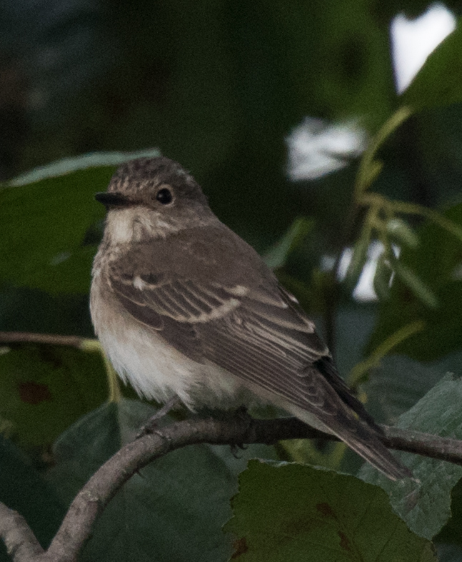 Two Spotted Flycatchers this morning, it’s turning into a good autumn for them, that’s at least 5 now compared to none last year. One was in the trees by the Harbour Authority compound and there was another – much more obliging individual – in the trees in Britannia Park (the grass and trees by the Waterguard pub). There were also 5 Coal Tits and 8 Chiffchaffs in the trees.