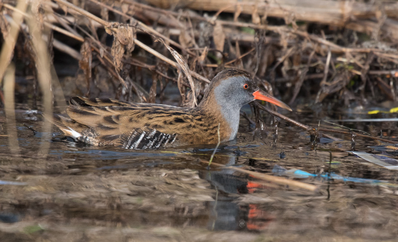 Kingfishers showing very well around the boardwalk in the wetland reserve this morning, at least 3 birds – and a Water Rail creeping around right next to the boardwalk but just in the bushes.