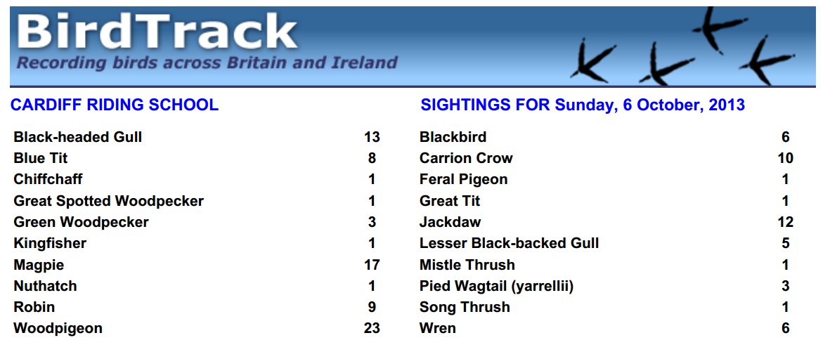 Wood pigeon passage evident over River Taff this morning as I walked to the Cardiff Riding School for a winter thrush survey. Compared to Steve Young’s count (see below) it was a modest passage of 5300 woodpigeons in 15 minutes. About 50 non migrating woodpigeons were on the winter thrushes survey along with 16 blackbirds, 1 mistle thrush and 8 redwing.